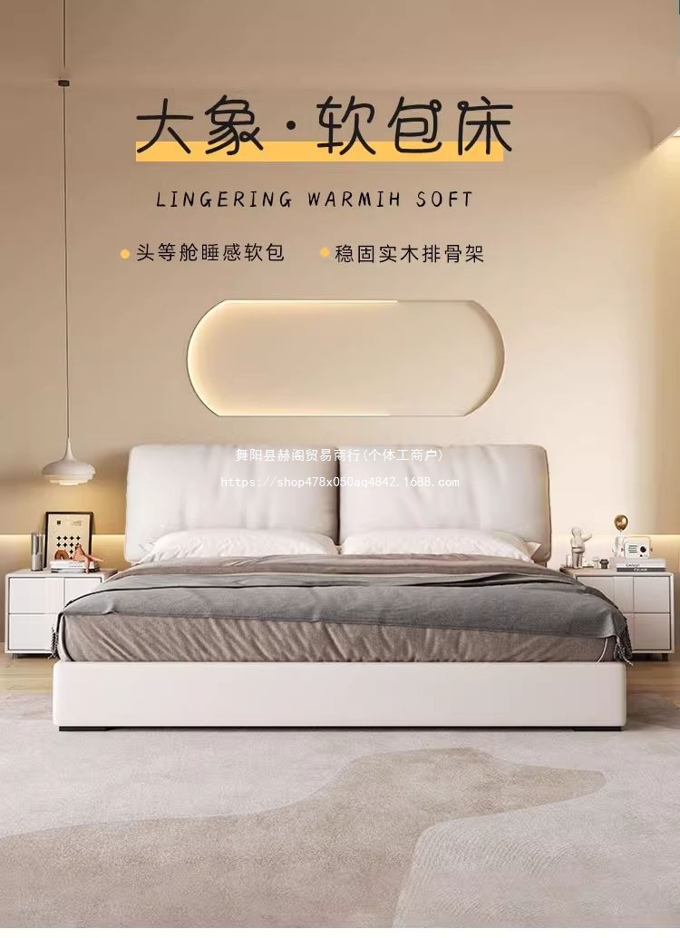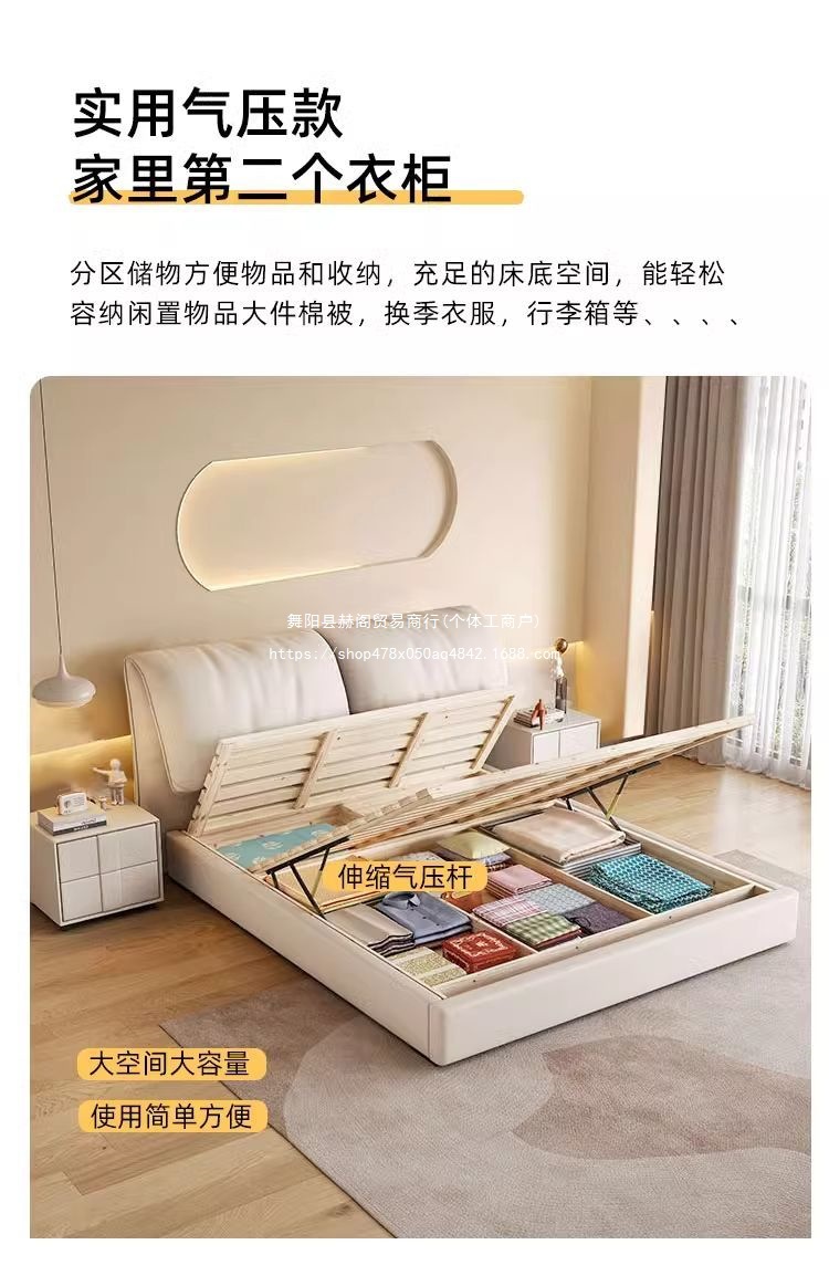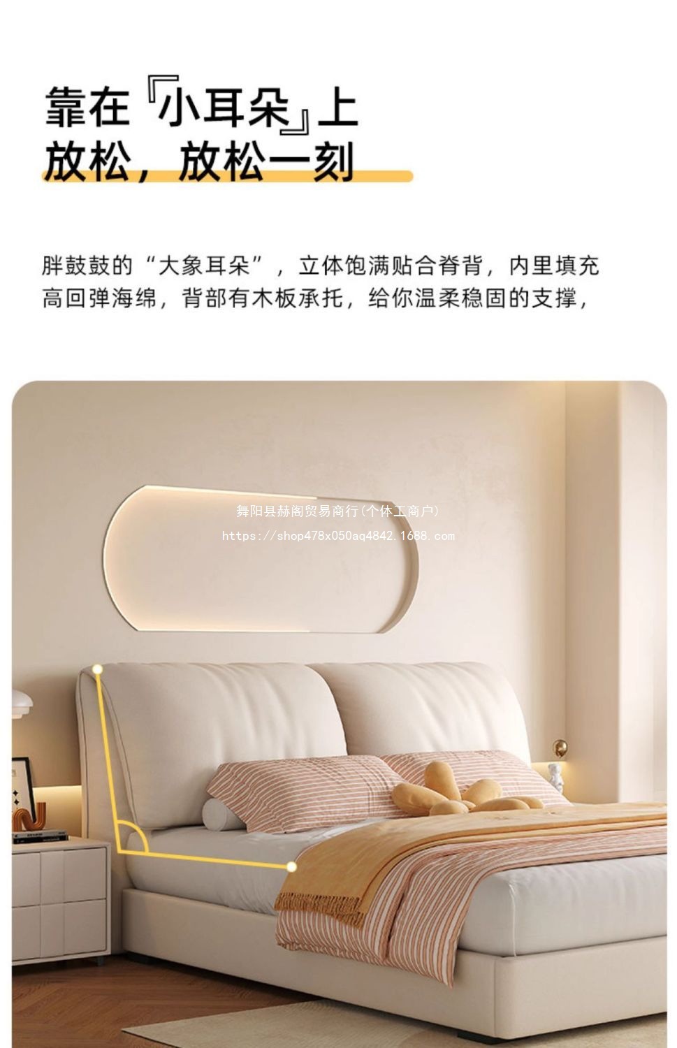 코끼리 귀 가죽 침대 현대적인 간단한 작은 아파트 대형 침대 더블 침대 마스터 침실 하이 엔드 소프트 팩 더블 수납 웨딩 침대스토어 가기