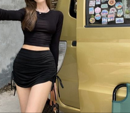 여성용 드로스트링 플리츠 스커트, 하이웨이스트 슬리밍 미니스커트, 여름 미니 핫걸 신제품 힙허깅 스커트스토어 가기