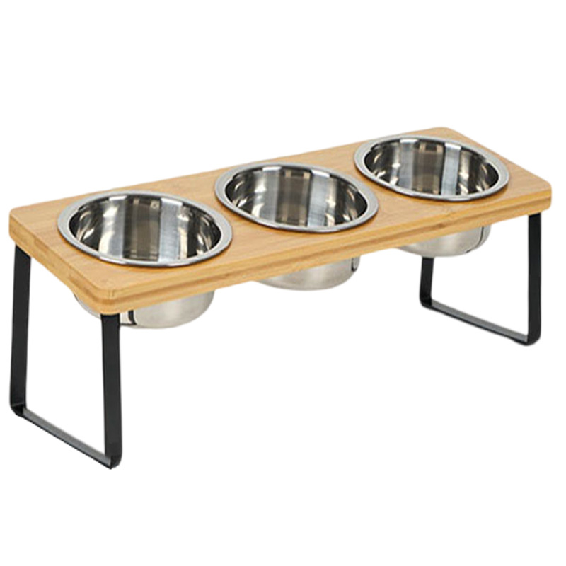 경사형 고양이 밥그릇 거치대 소형견 나무 밥그릇 철제 스탠드 스테인리스 애완동물 3그릇 식기 고양이 사료 높이 조절 가능