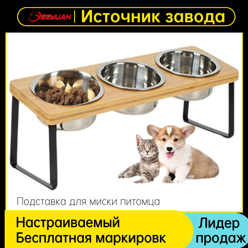 경사형 고양이 밥그릇 거치대 소형견 나무 밥그릇 철제 스탠드 스테인리스 애완동물 3그릇 식기 고양이 사료 높이 조절 가능스토어 가기