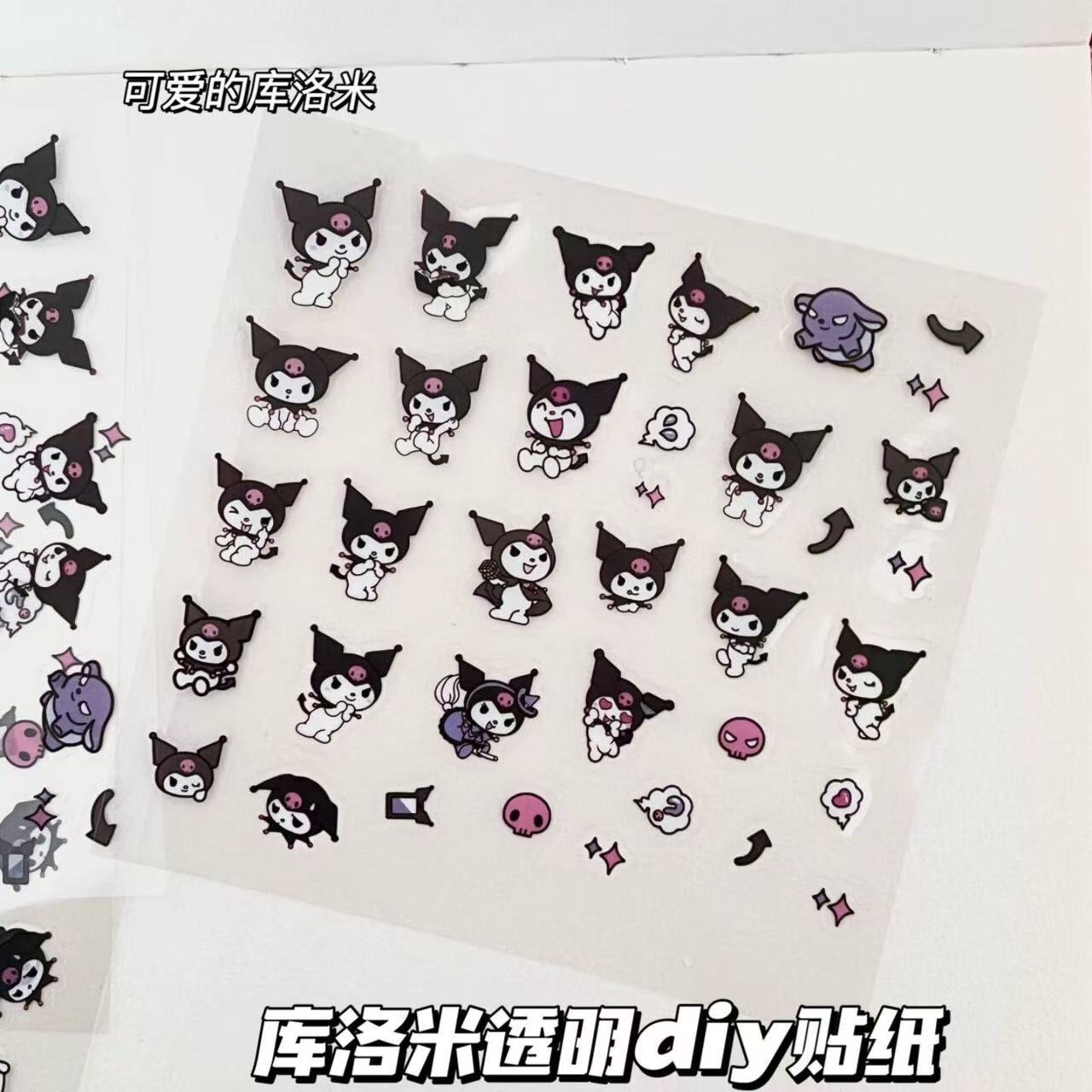 귀여운 만화 Kuromi 방수 투명 스티커 ins 귀여운 DIY 핸드북 Guka 장식 휴대 전화 학생 저렴한