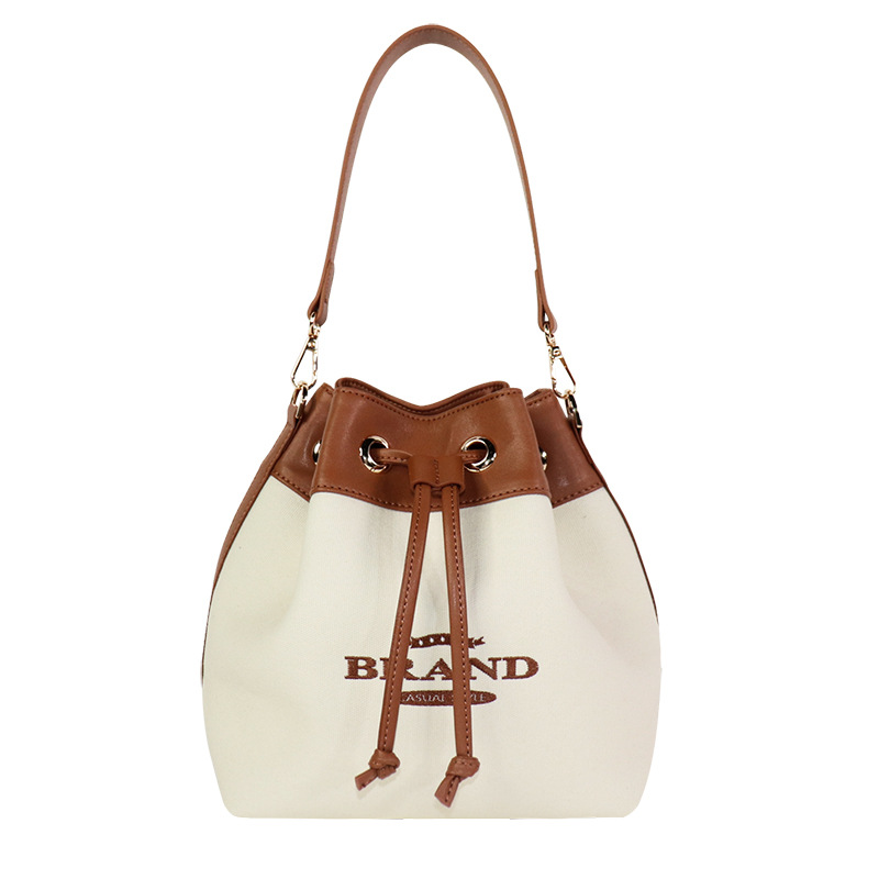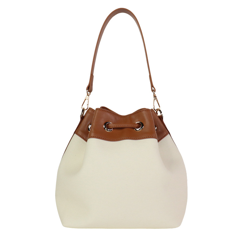 2025 뜨거운 판매 여성 가방 Drawstring 어깨 가방 Crossbody 버킷 가방 데님 캔버스 한국어 버전 부드러운 가죽 복고풍 대비 색상 가방