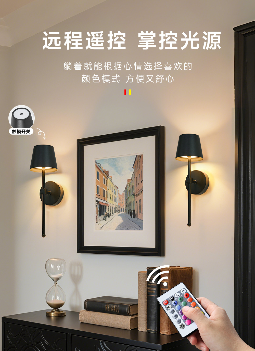 국경 간 미국식 배선이 필요없는 침실 머리맡 램프 거실 장식 원격 제어 가능한 골드 무선 충전 디밍이 가능한 벽 램프