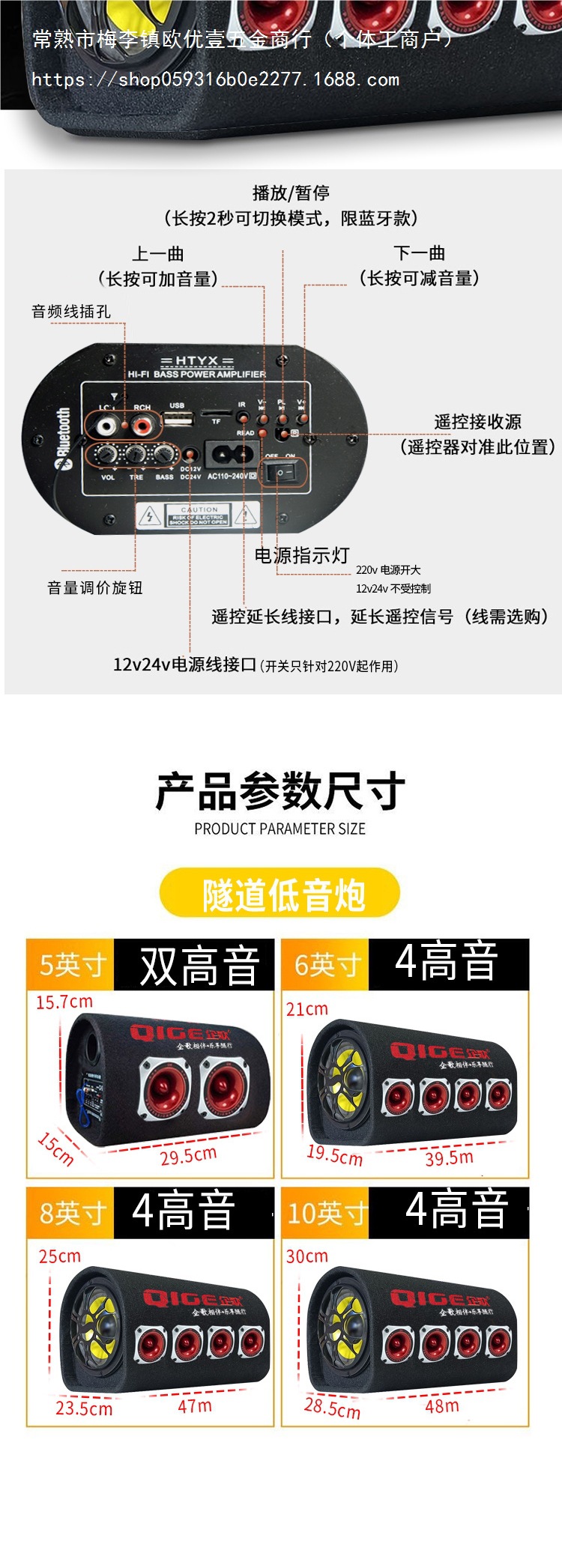 5개의 스피커 터널 자동차 서브우퍼 블루투스 오디오 대용량 24V 서브우퍼 220V 스피커를 갖춘 고급형스토어 가기