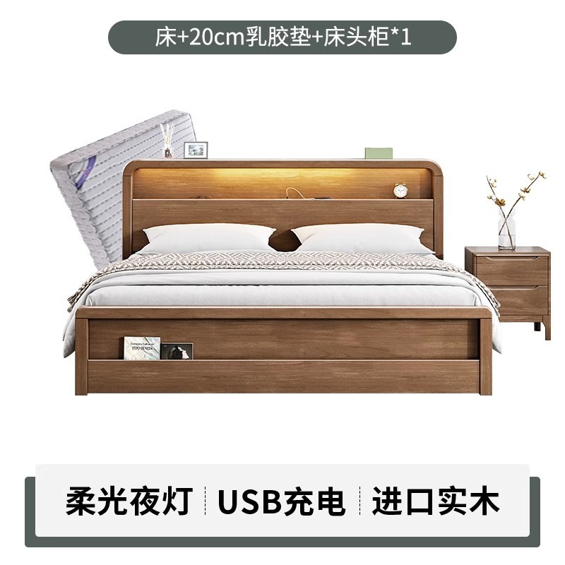 북유럽 원목 침대 호두색 모던 심플 공기압 수납 1.5m 1.8m 더블 침대 마스터 침실 가구스토어 가기