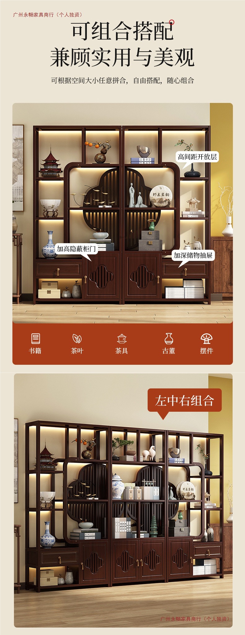 • [Ruiqi Xiangyun Bogu 랙]-왼쪽, 중간 및 오른쪽 조합 스타일-높이 155