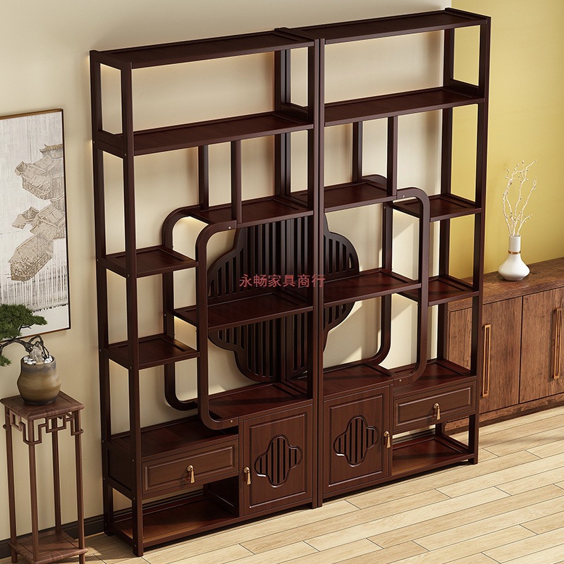 새로운 중국 스타일의 Bogu 선반 단단한 나무 중국 차 방 장식 선반 Duobaoge 장식품 현대 간단한 디스플레이 캐비닛