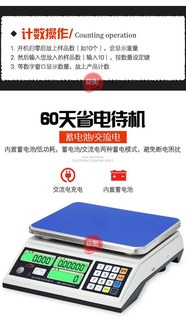 Cody 전자 저울 JSC-S 정밀 산업용 계량 계수 저울 1/1.5/3/15/30kg 고정밀 플랫폼 저울