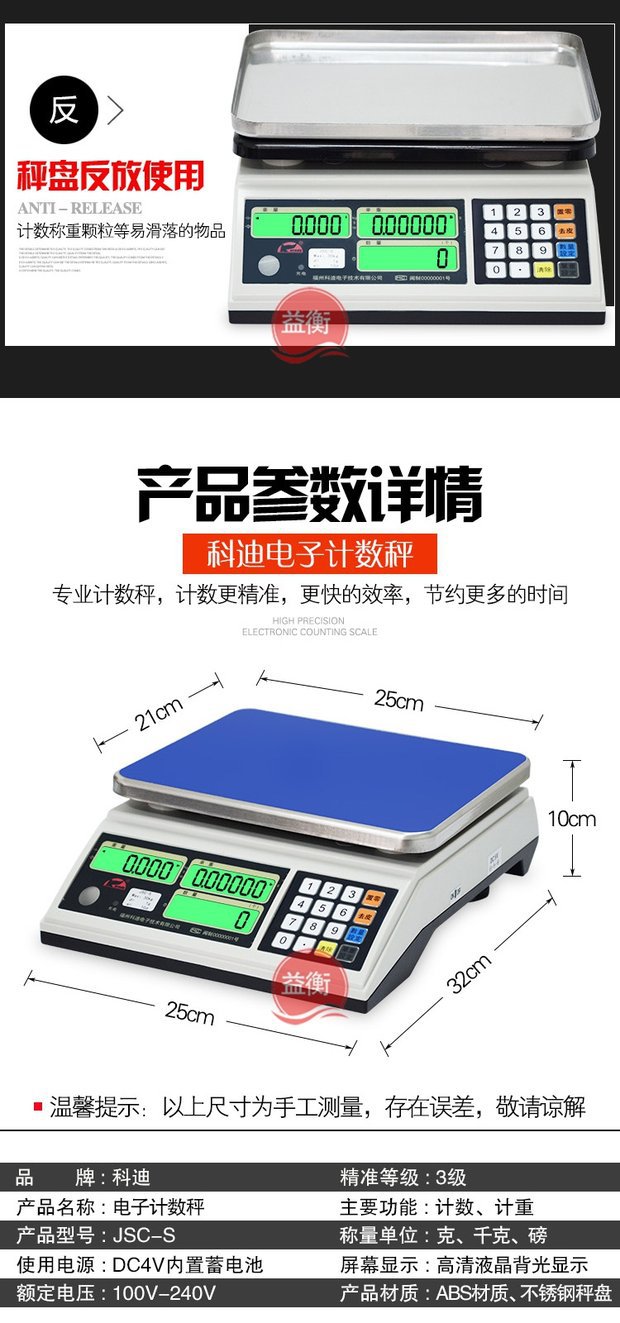 Cody 전자 저울 JSC-S 정밀 산업용 계량 계수 저울 1/1.5/3/15/30kg 고정밀 플랫폼 저울스토어 가기