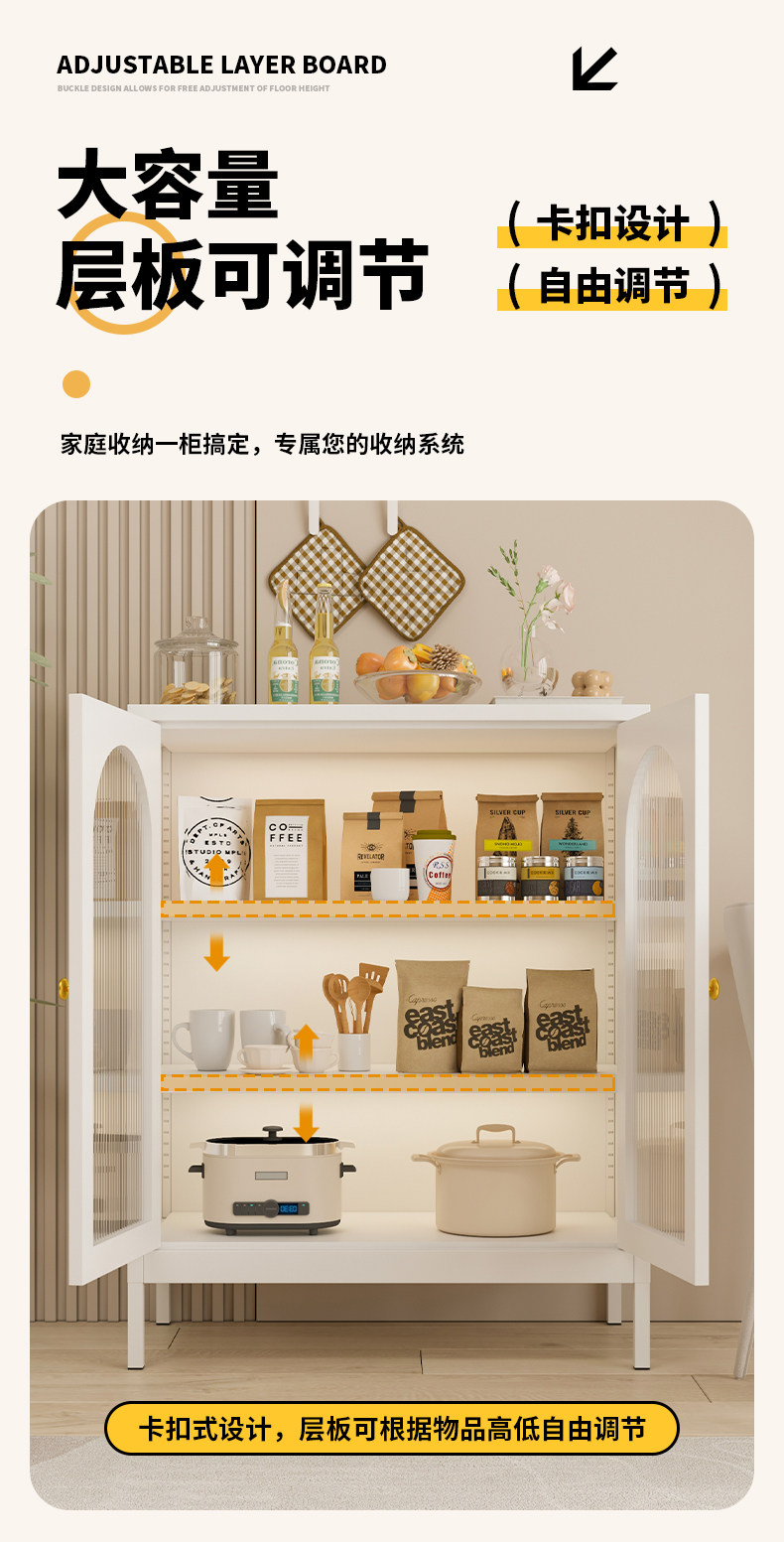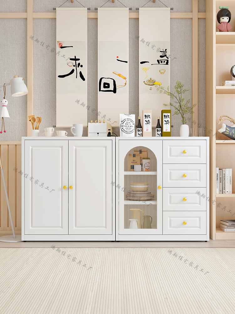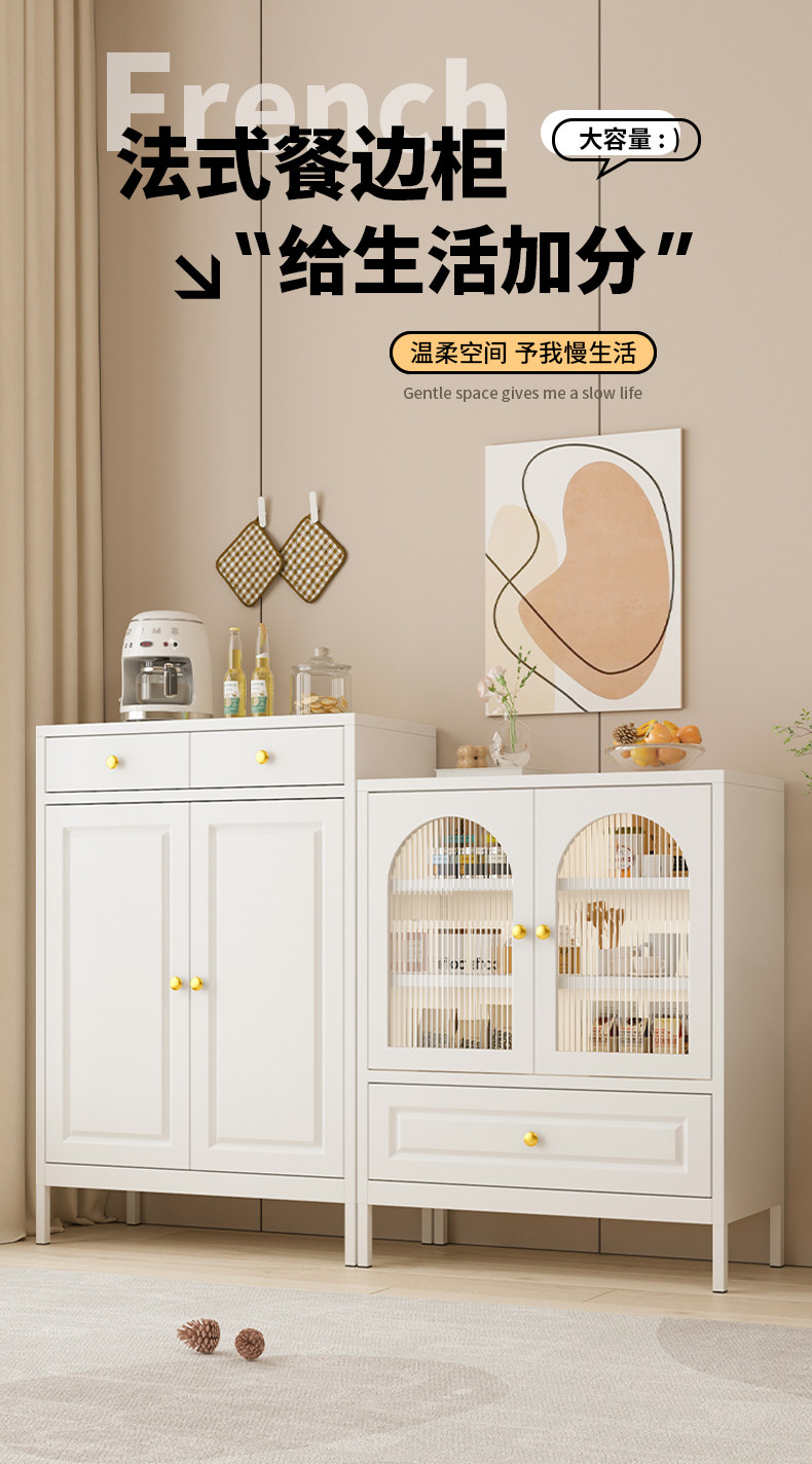 크림 스타일 철제 찬장 주방 수납 캐비닛 홈 거실 차 수납 캐비닛 벽 수납 낮은 캐비닛스토어 가기