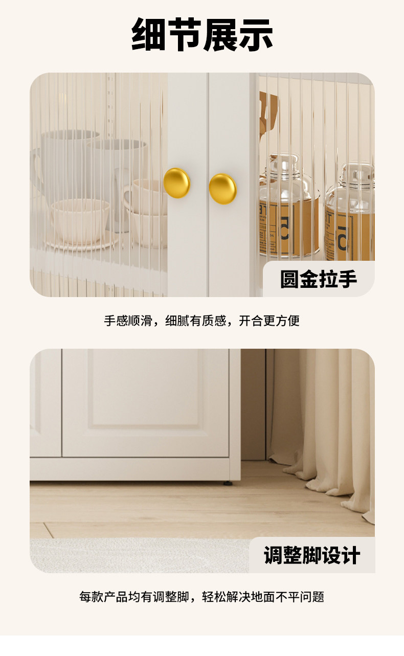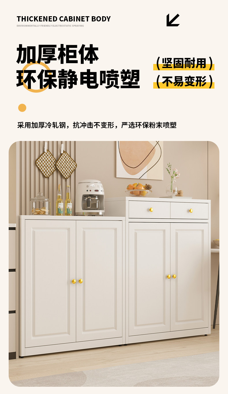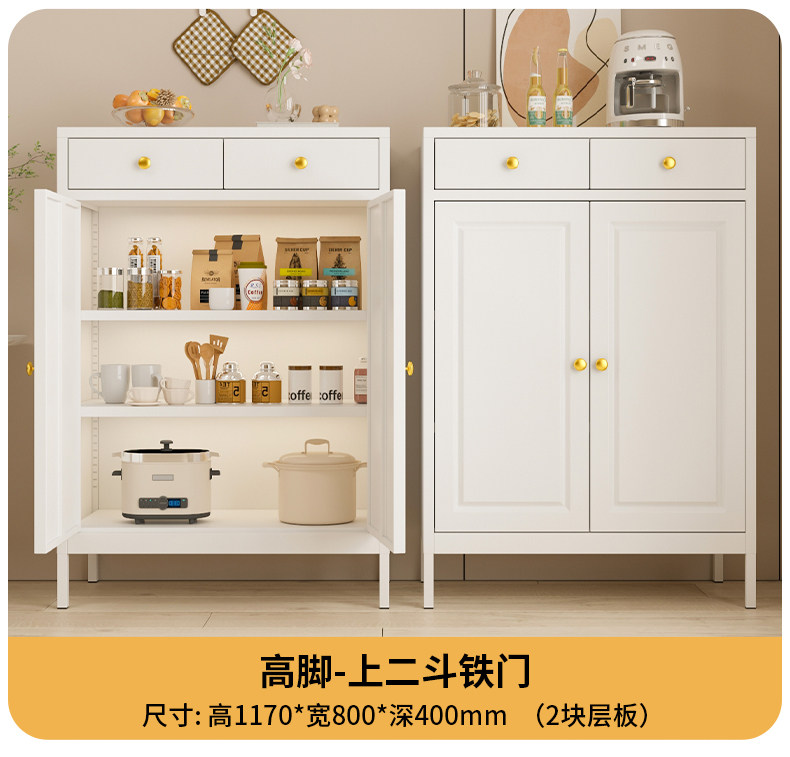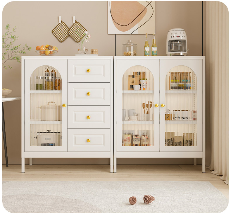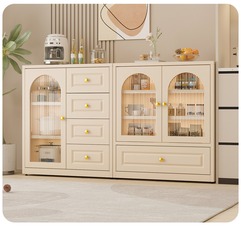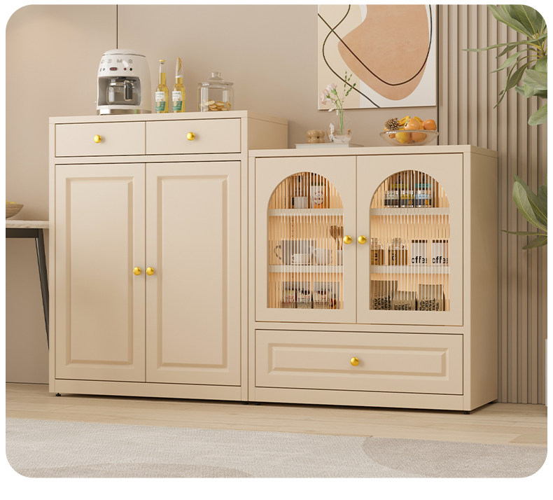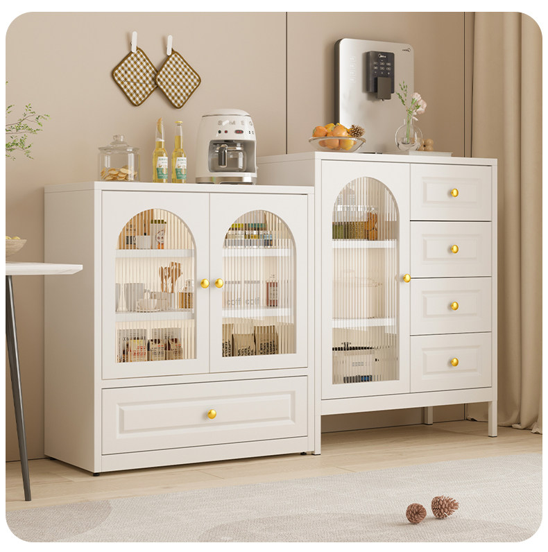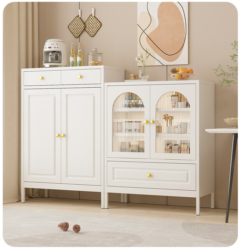 크림 스타일 철제 찬장 주방 수납 캐비닛 홈 거실 차 수납 캐비닛 벽 수납 낮은 캐비닛