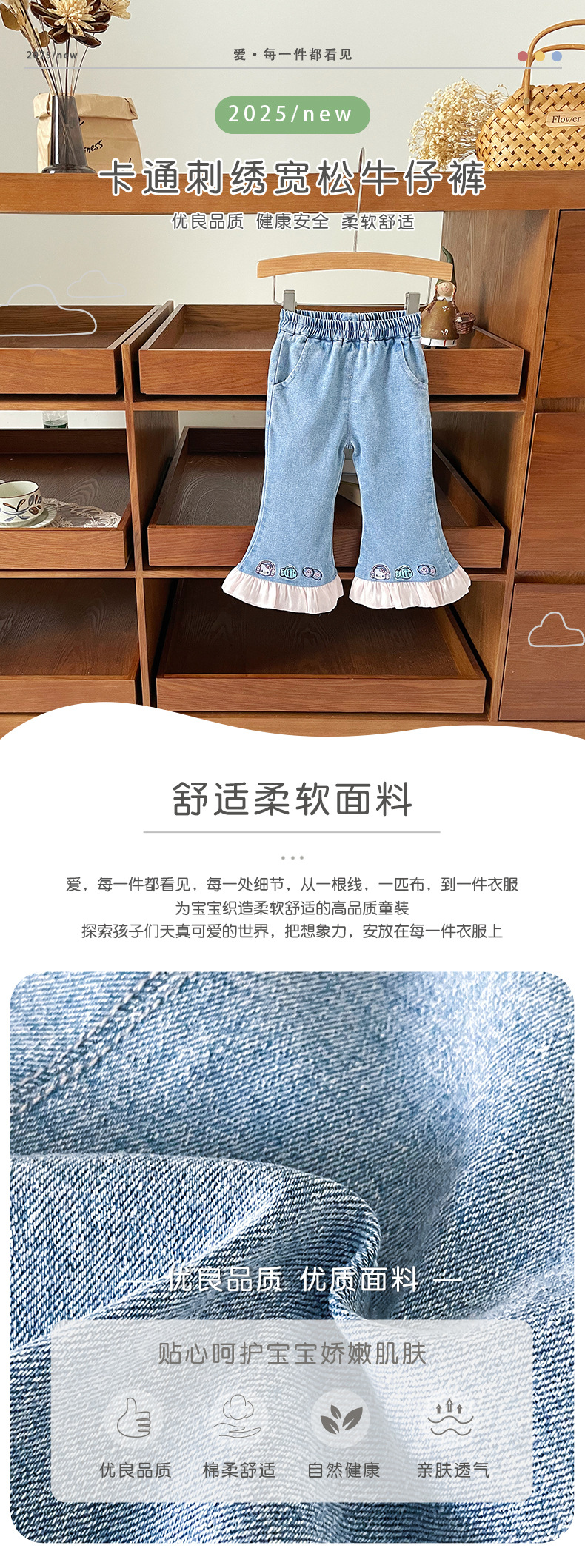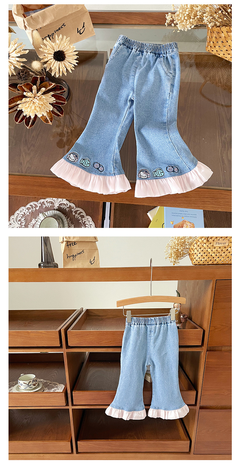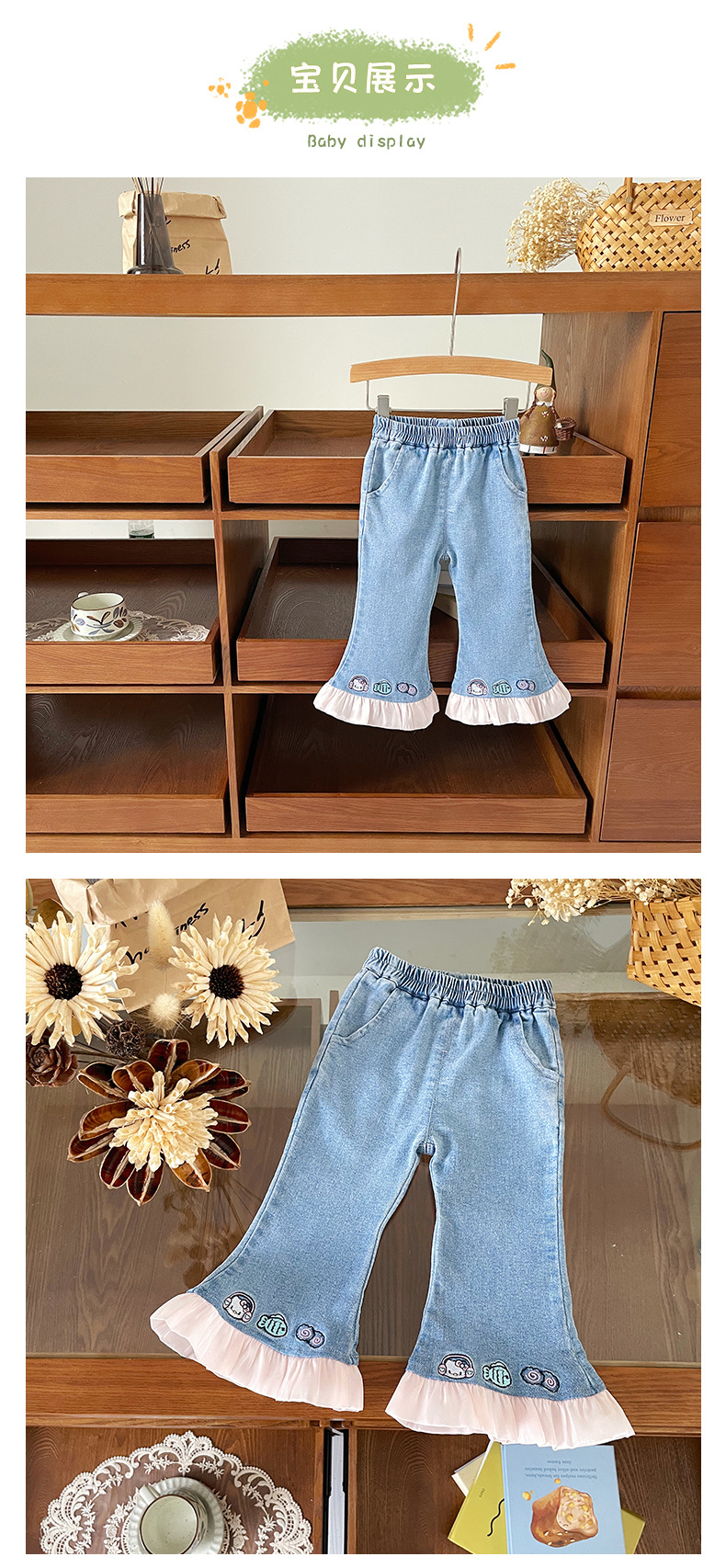 QK252105 여아 청바지 2025 가을 새로운 한국 스타일 디자인 레이스 바닥 데님 플레어 바지스토어 가기