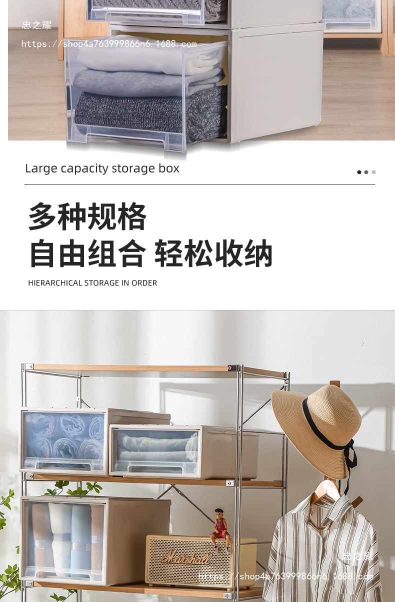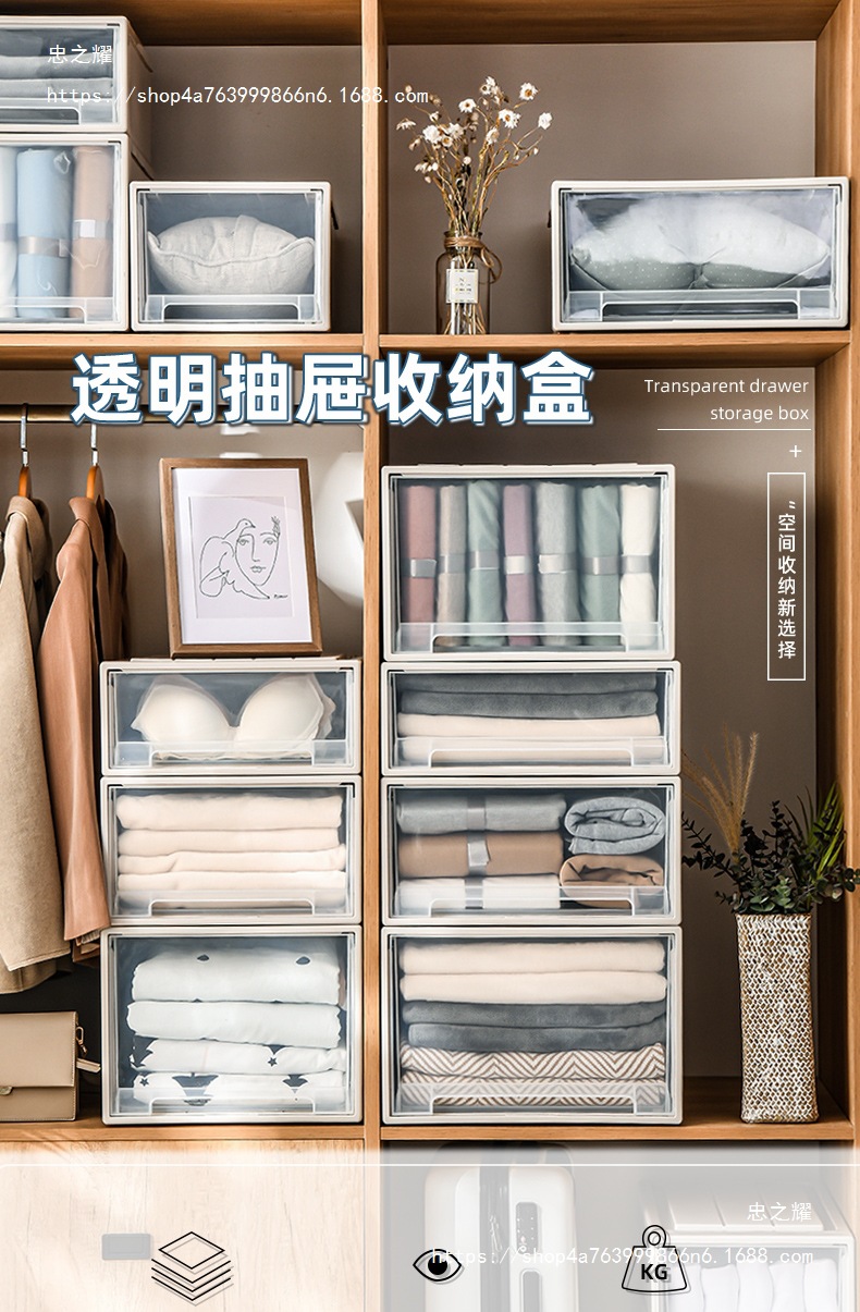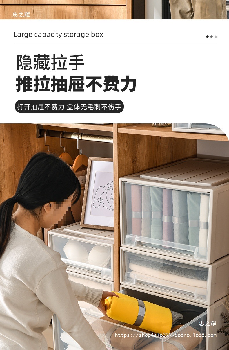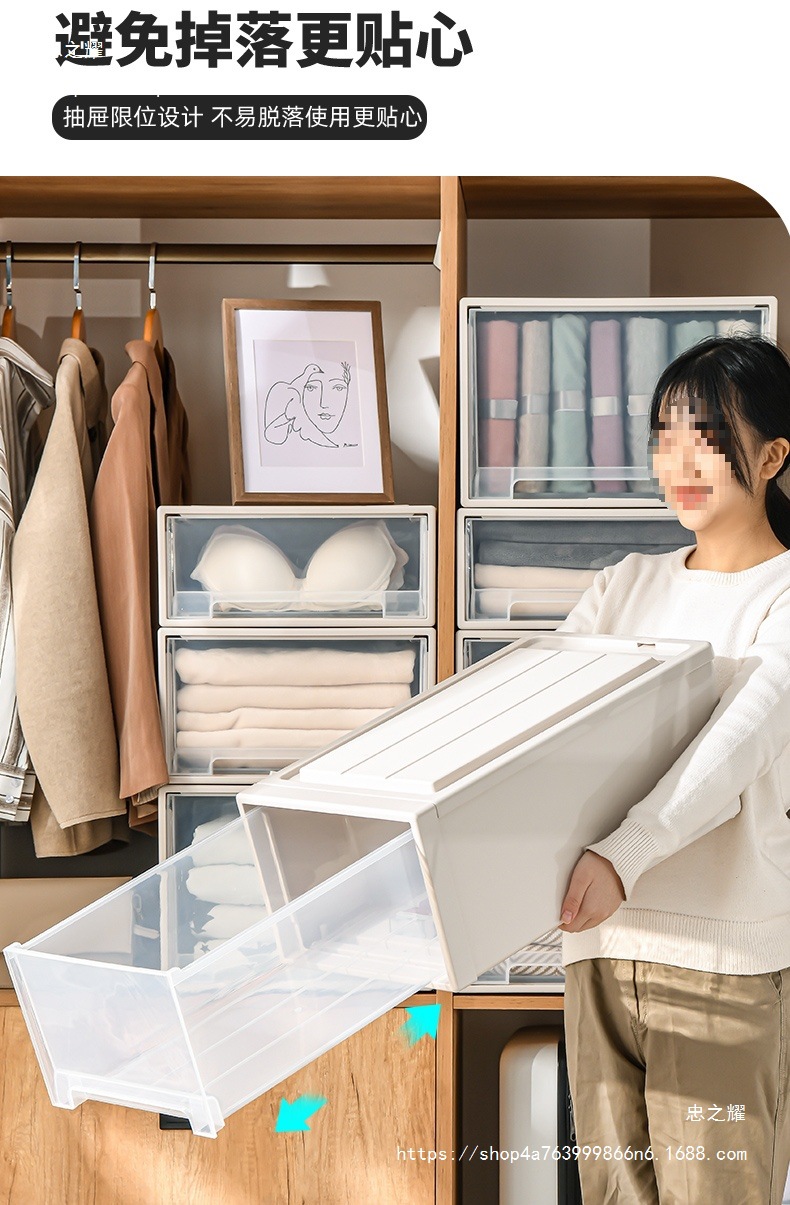 도매 의류 보관 상자 서랍 유형 플라스틱 가정용 의류 투명 옷장 보관 상자 의류 보관 캐비닛