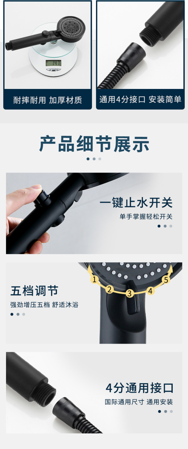 가정용 욕실 샤워용 5단 가압 샤워 헤드 울트라 가압 샤워 헤드 샤워 헤드 세트스토어 가기