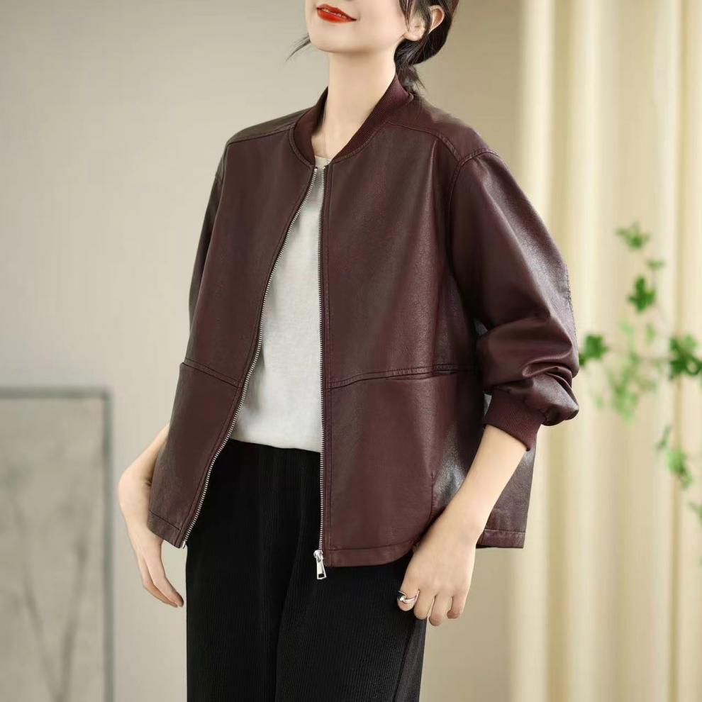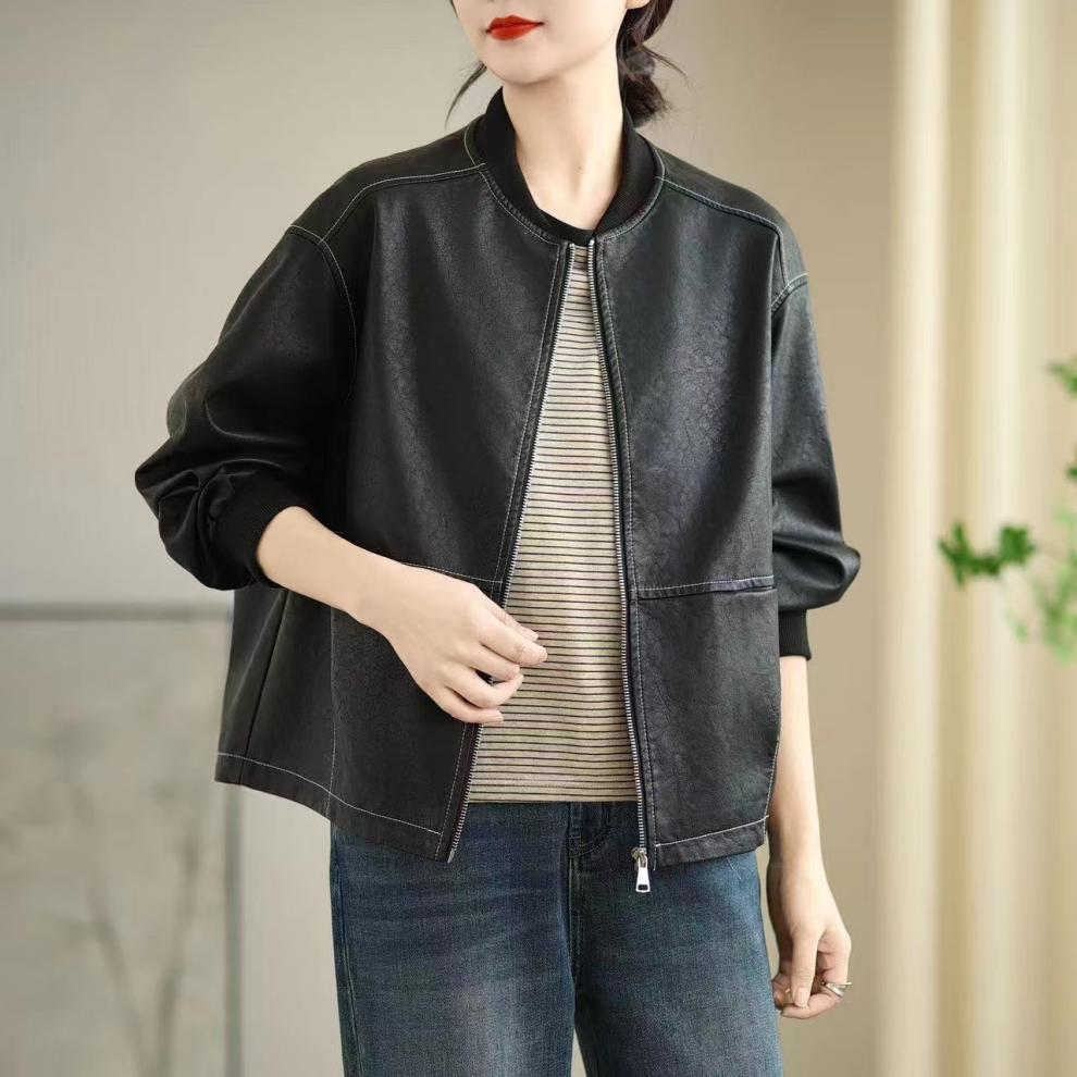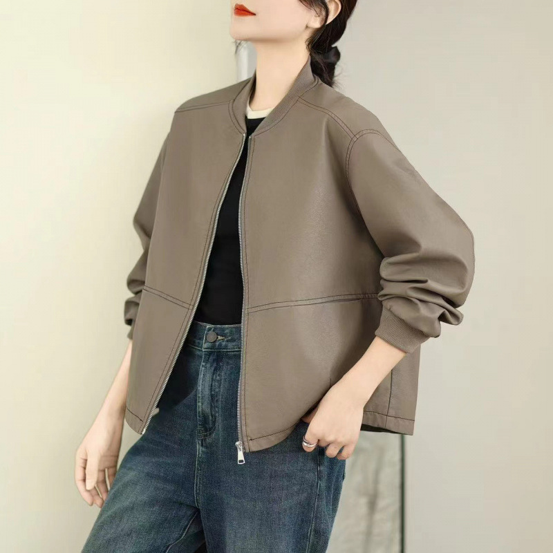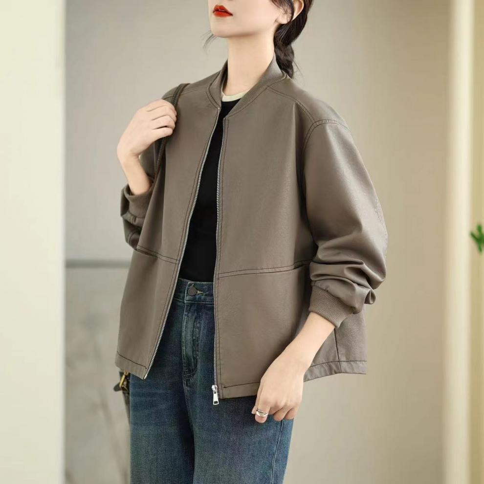 여성을위한 PU 짧은 가죽 자켓 봄 작은 2025 새로운 표면 바람 방지 야구 재킷