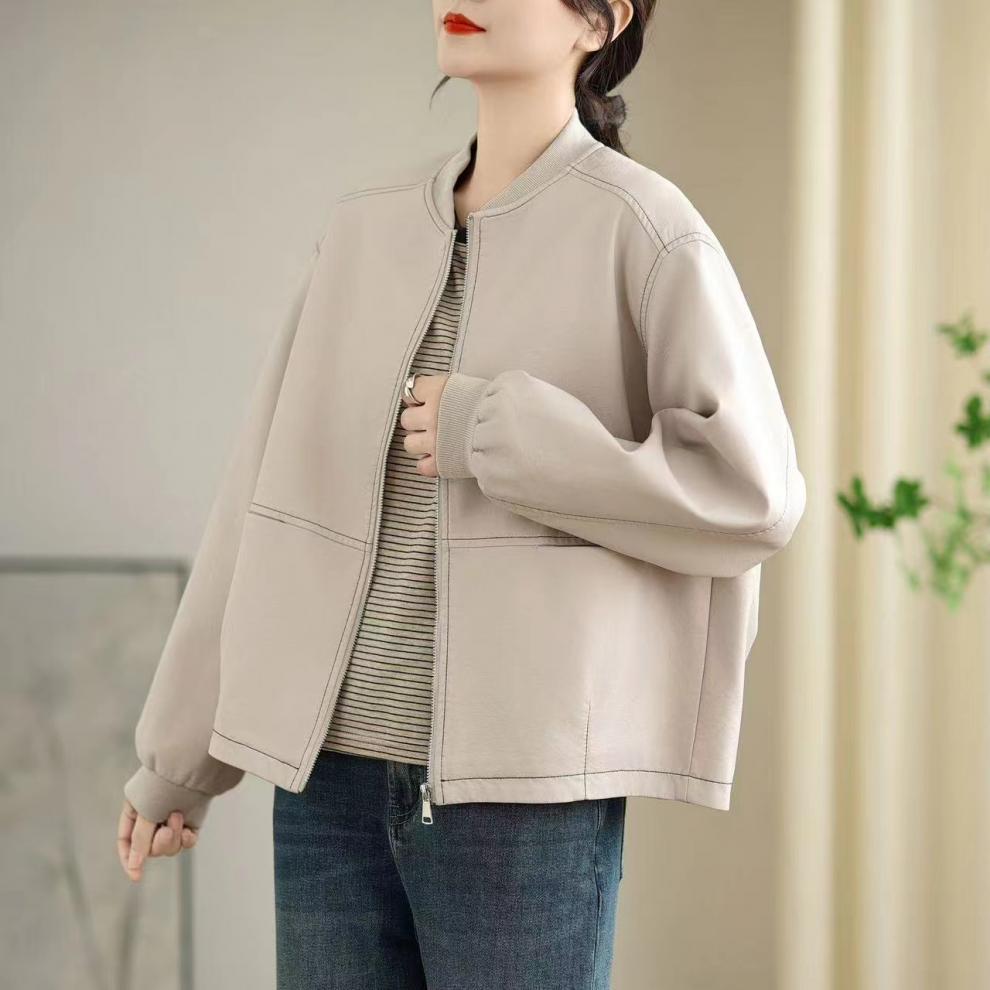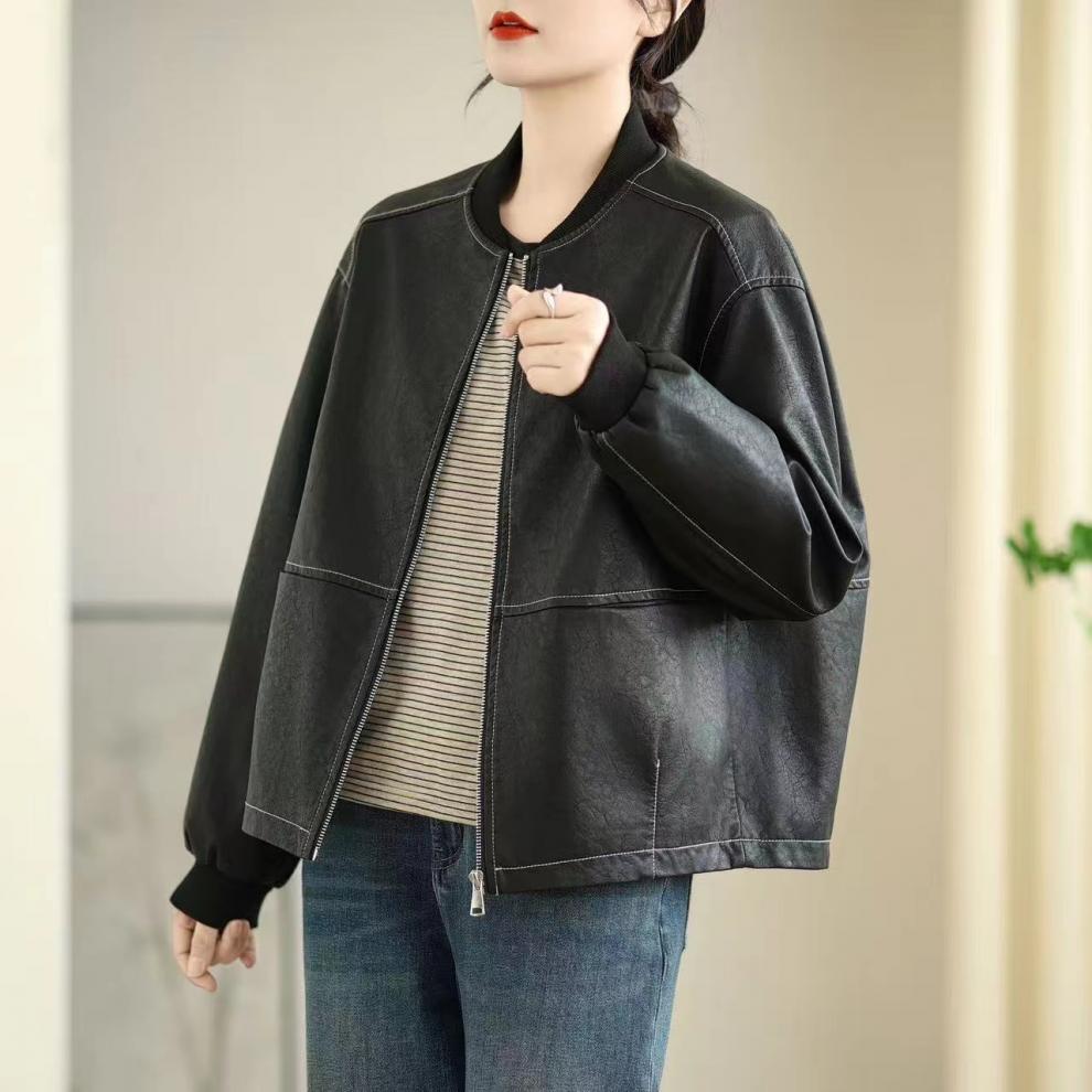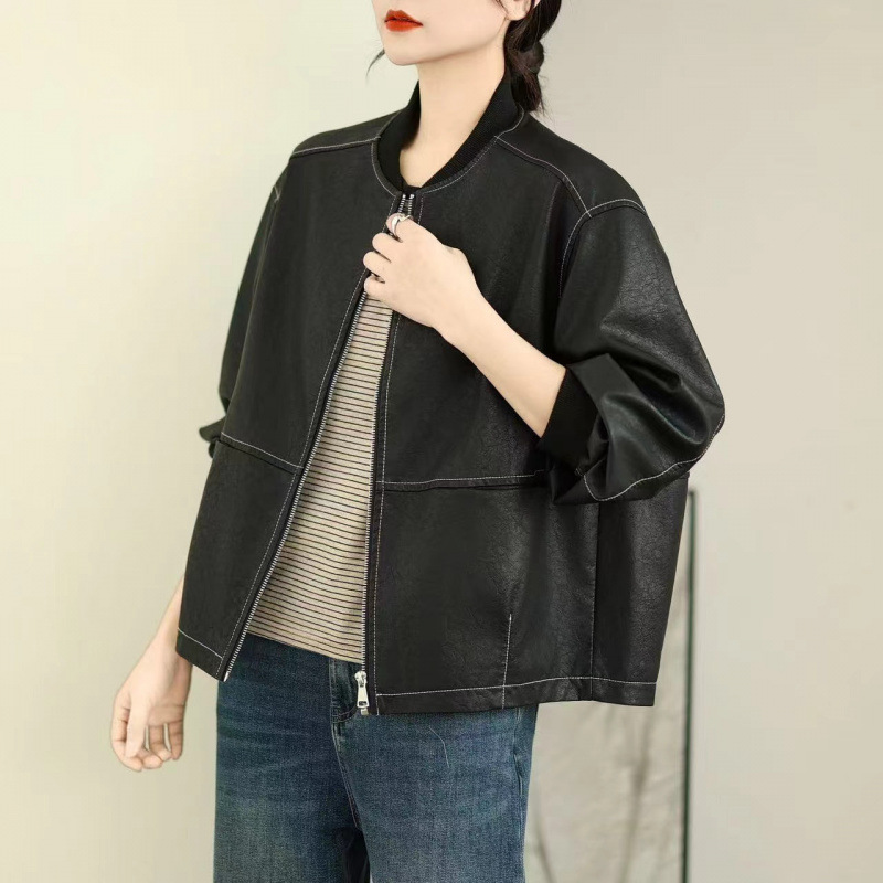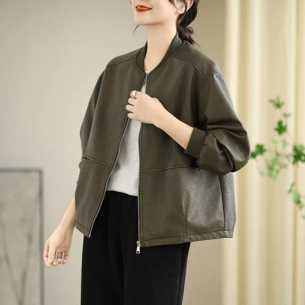 여성을위한 PU 짧은 가죽 자켓 봄 작은 2025 새로운 표면 바람 방지 야구 재킷