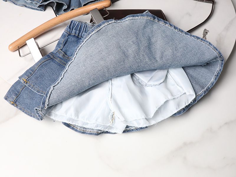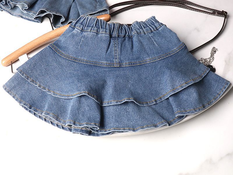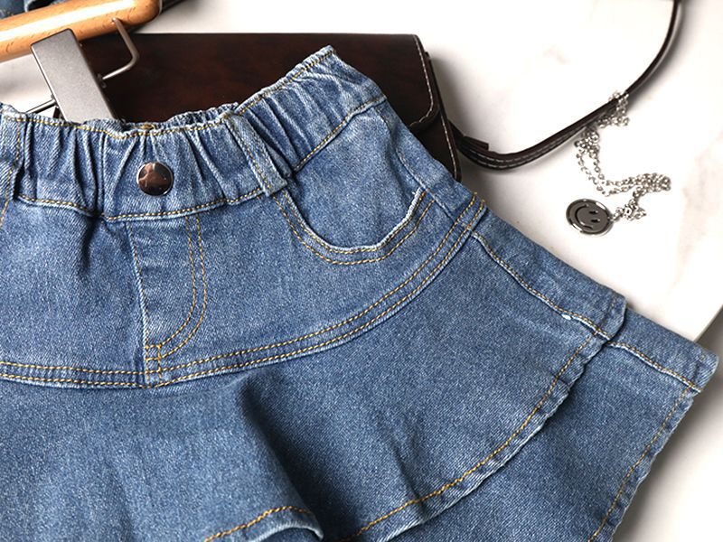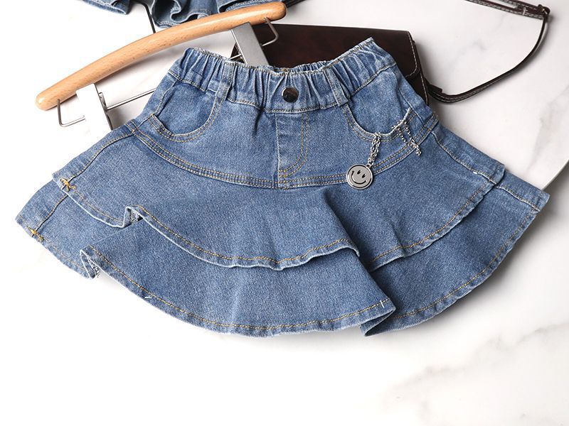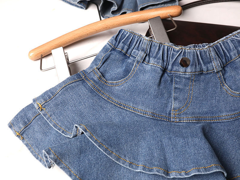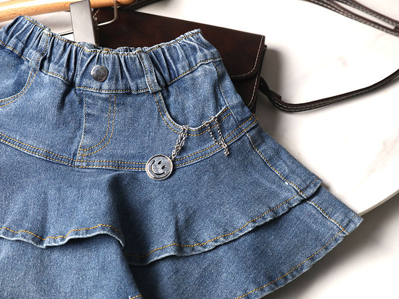 여아 데님 스커트 봄 여름 한국 스타일 아동복 아동 스타일 케이크 스커트 큰 아동용 얇은 여름 짧은 스커트