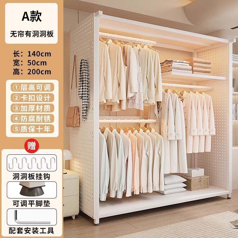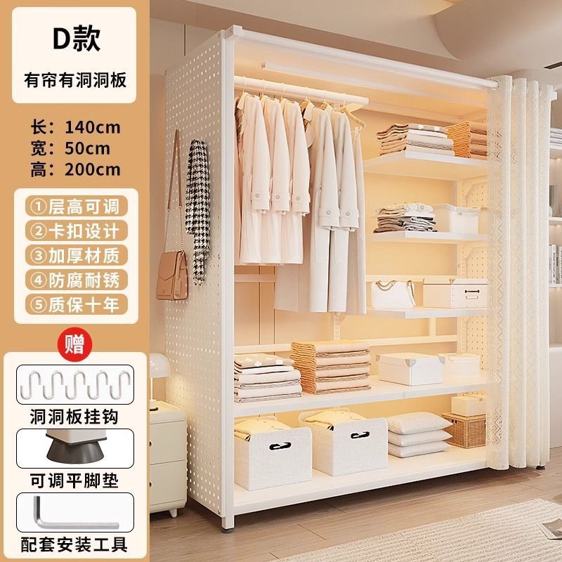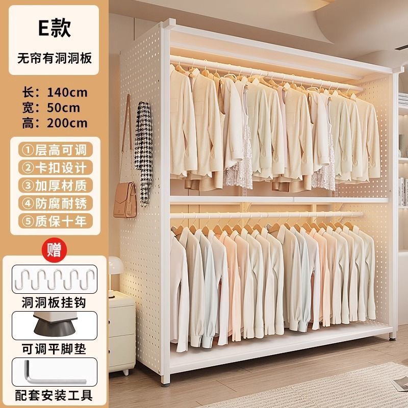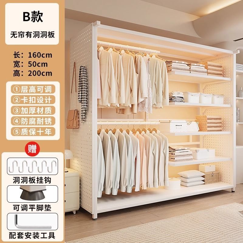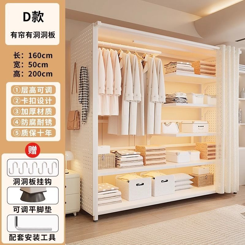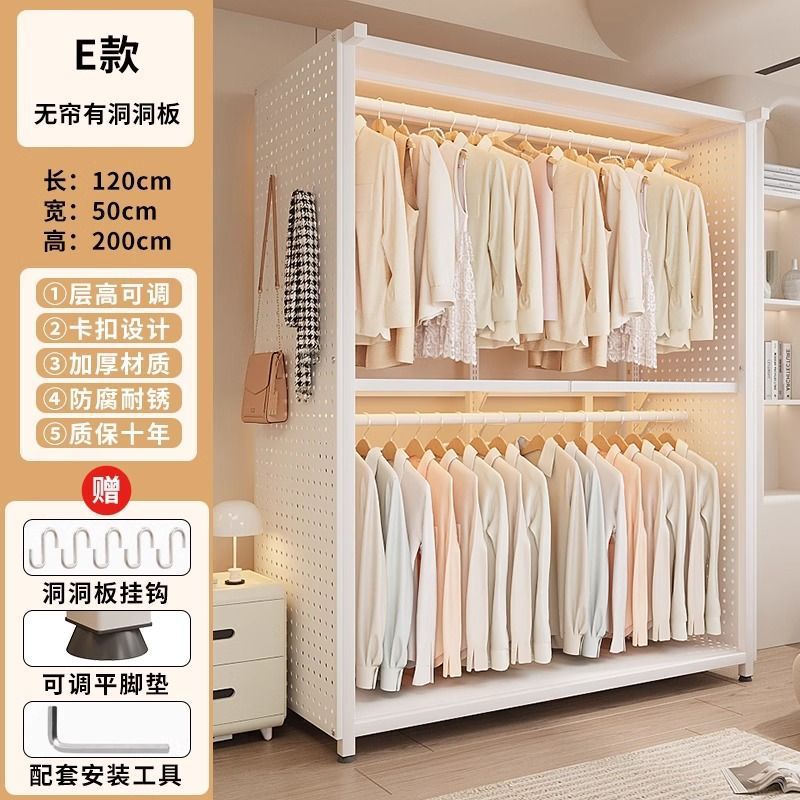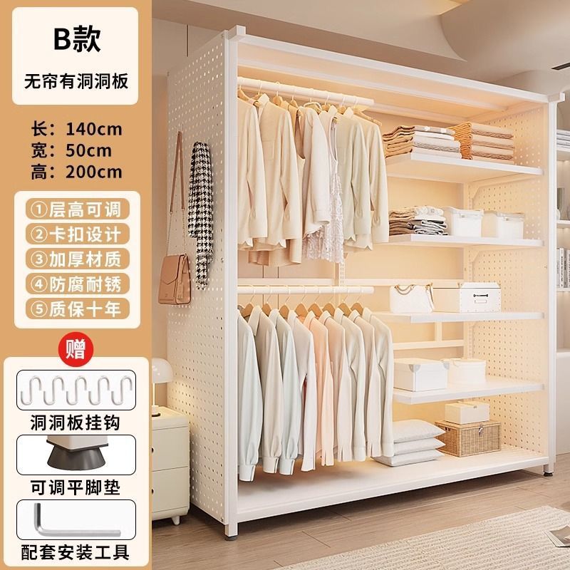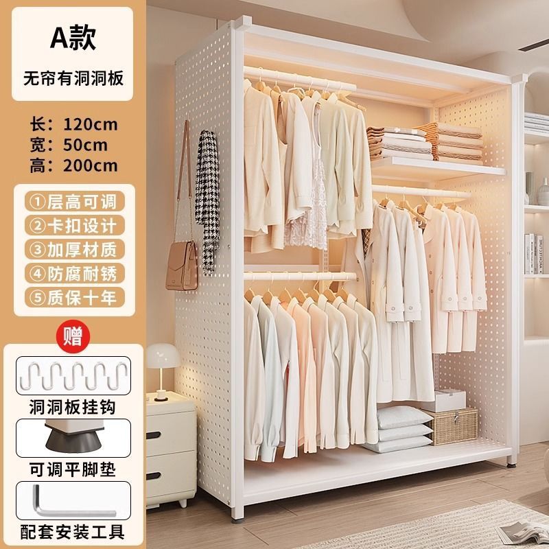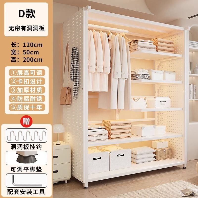 옷장 침실 간단한 가정용 금속 조립 전체 강철 프레임 구멍 보드 옷장 강력하고 내구성이 뛰어난 개방형 보관 캐비닛스토어 가기