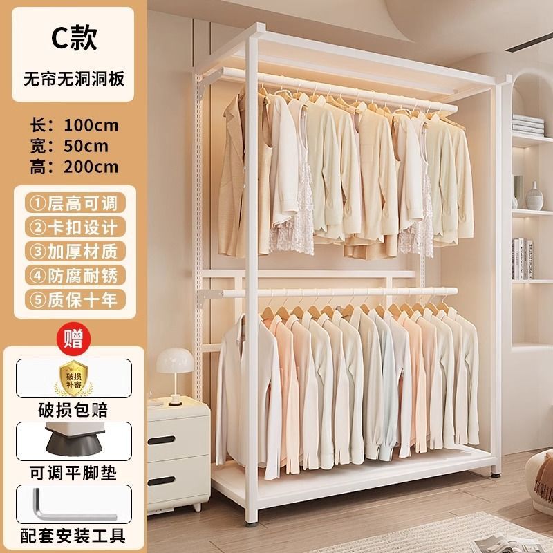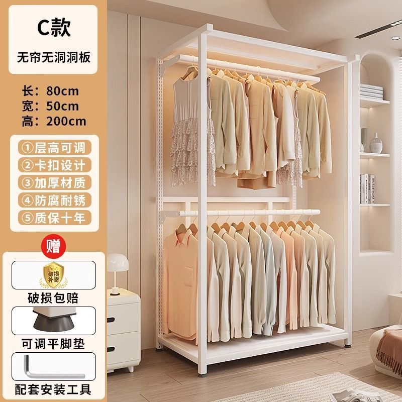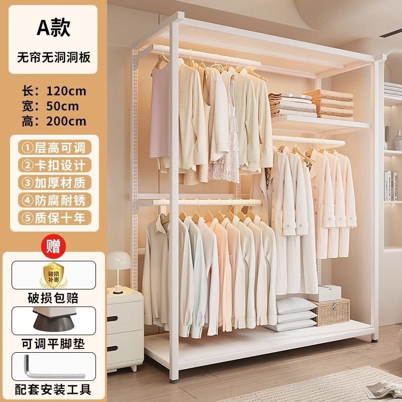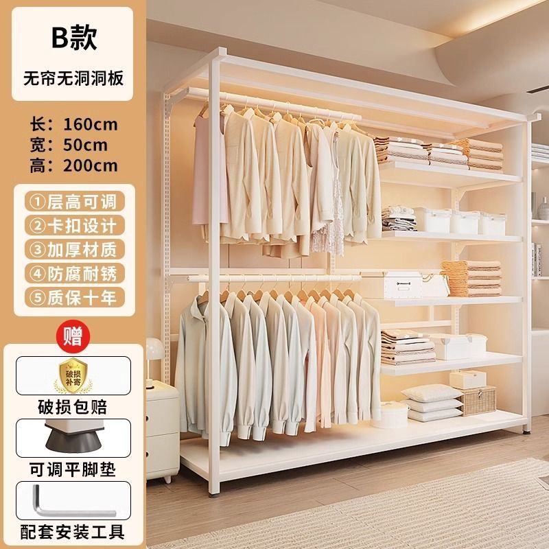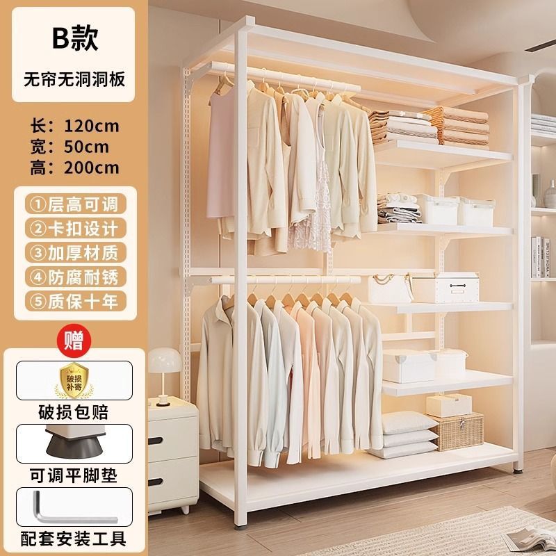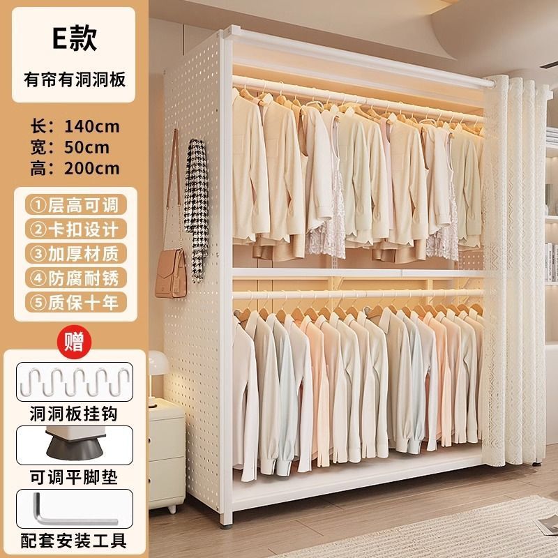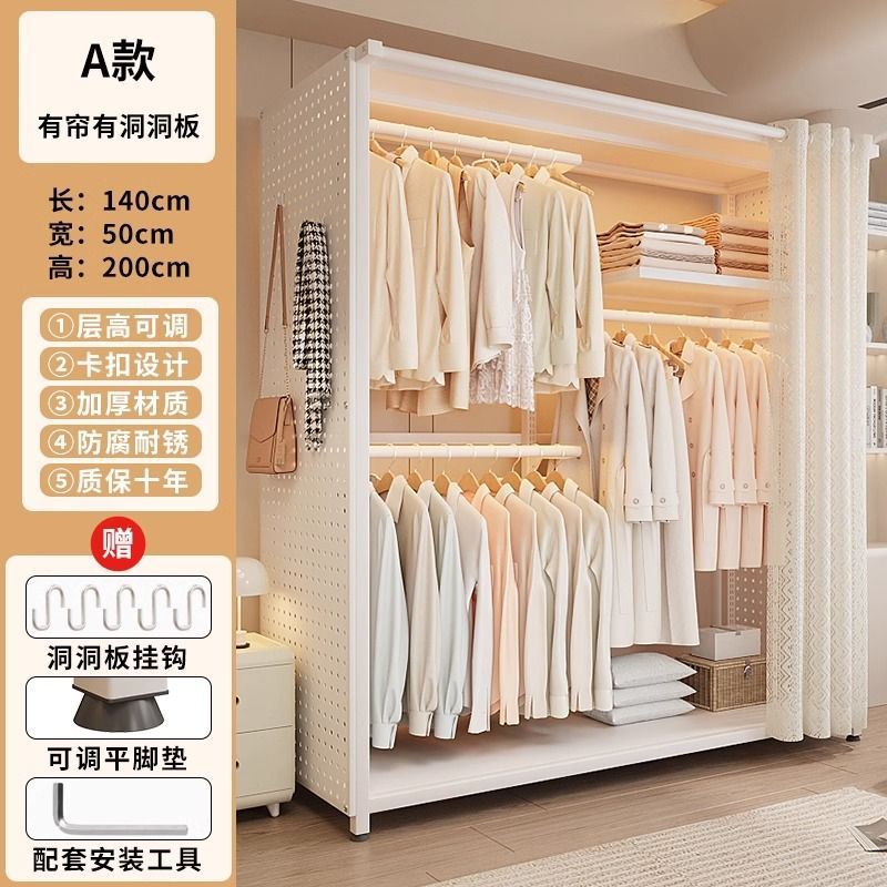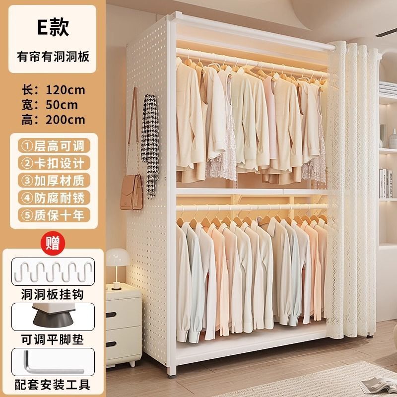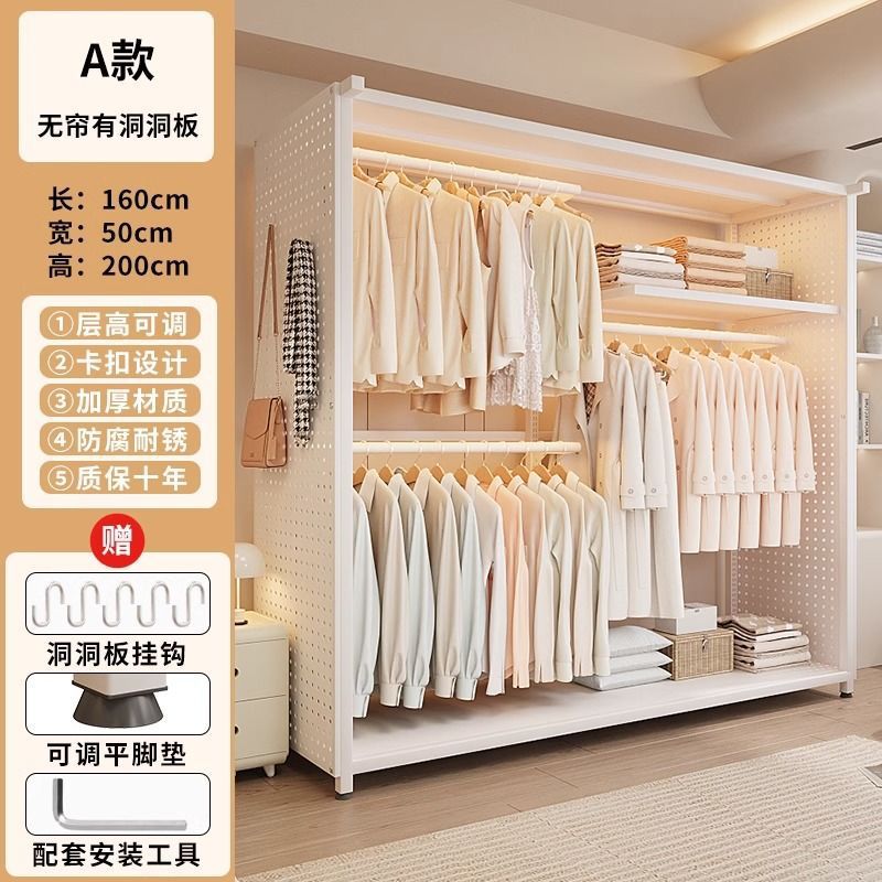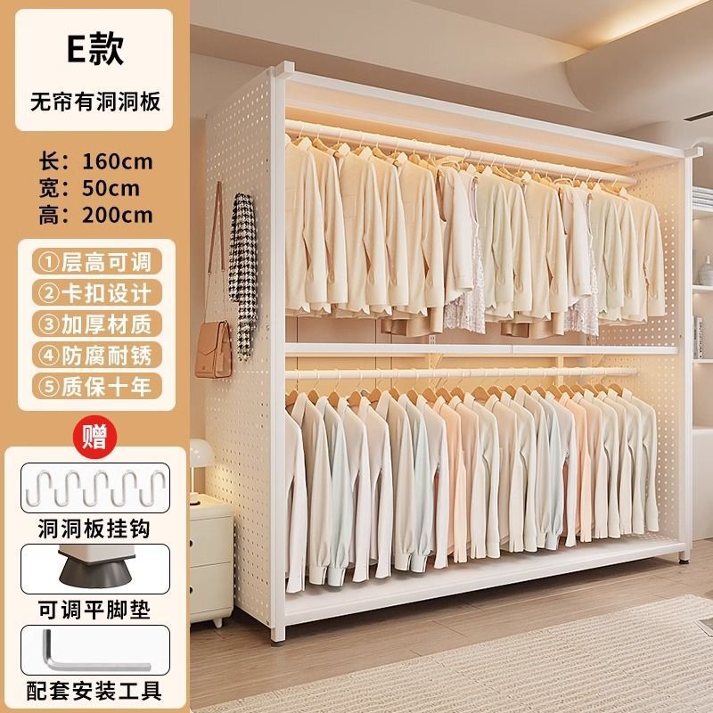 옷장 침실 간단한 가정용 금속 조립 전체 강철 프레임 구멍 보드 옷장 강력하고 내구성이 뛰어난 개방형 보관 캐비닛스토어 가기