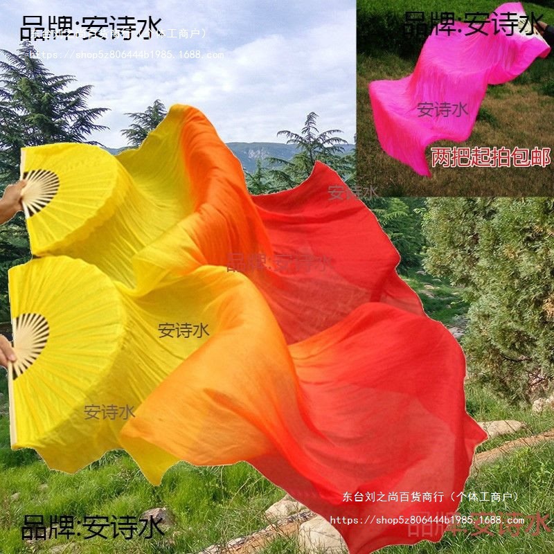 댄스 팬 모조 실크 단색 3색 그라데이션 댄스 팬 긴 두꺼운 양코 스퀘어 댄스 팬 [2개]