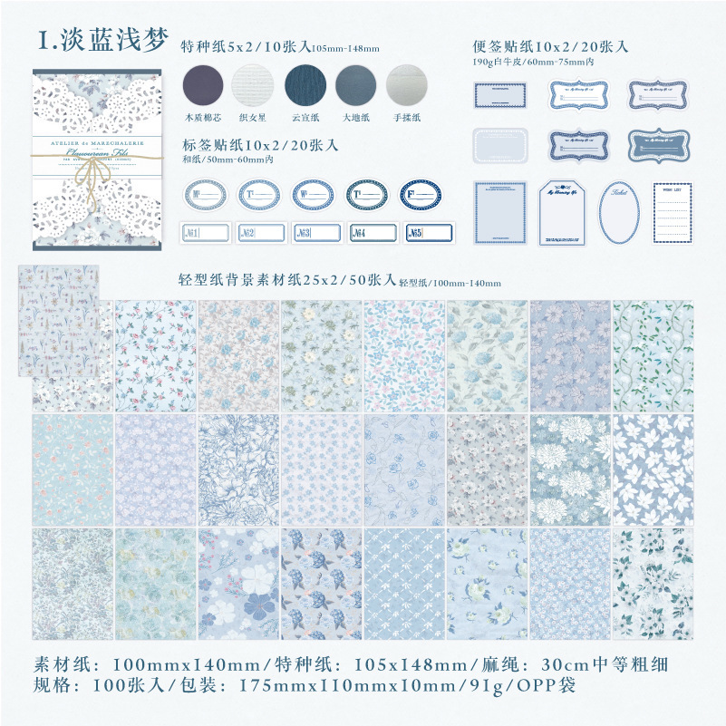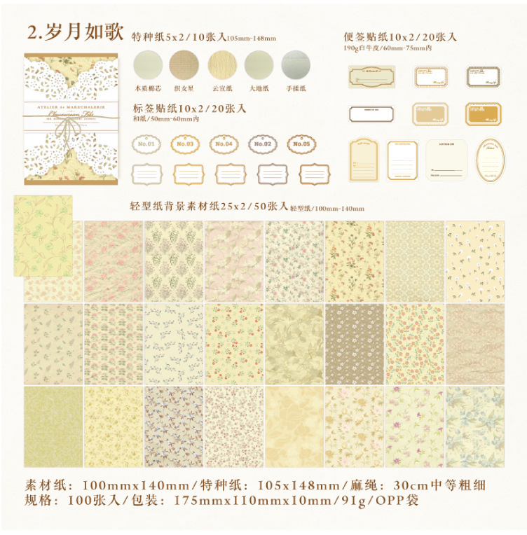 Twilight Years Like Song 시리즈 멀티 소재 패키지 DIY 콜라주 핸드북 소재 100장 5가지 스타일스토어 가기
