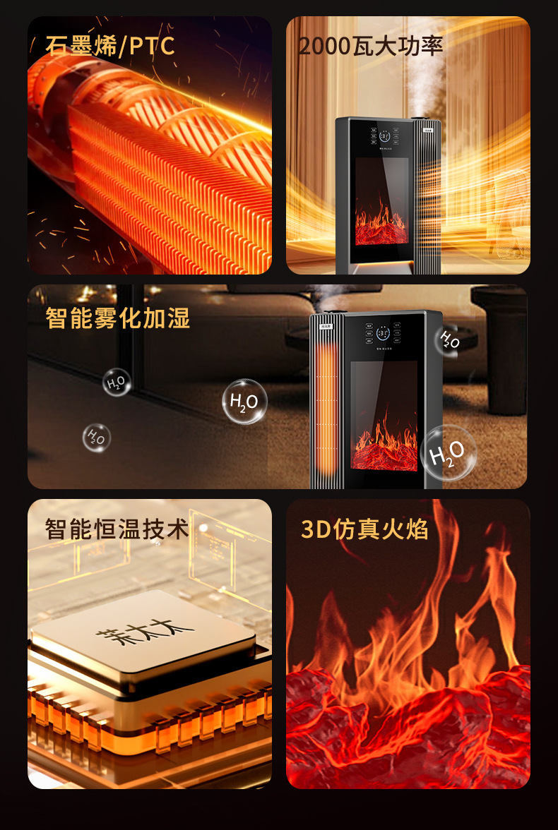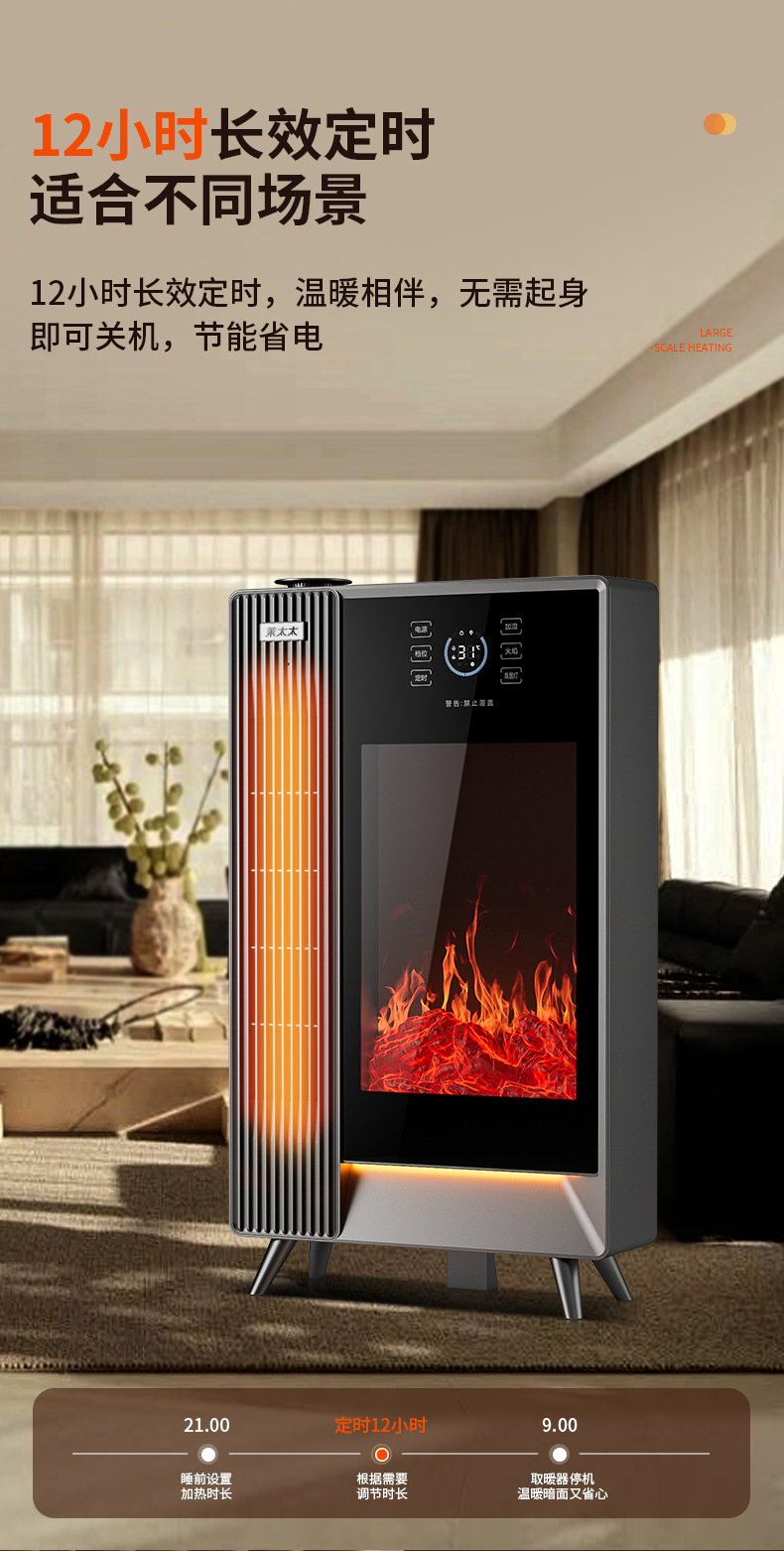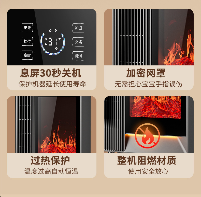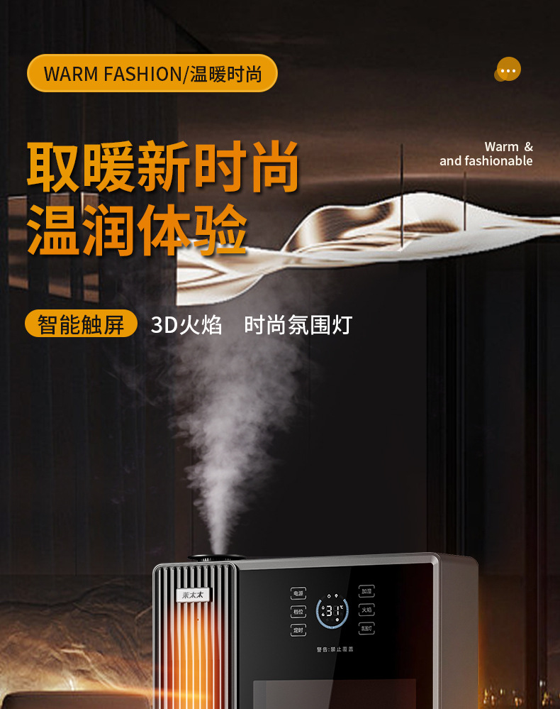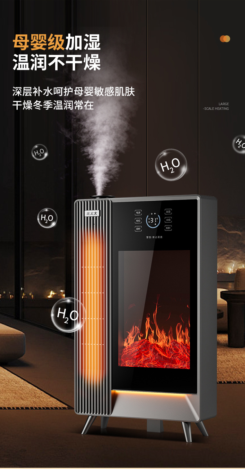 겨울철 가정용 수직형 그래핀 히터, 에너지 절약형 가습 전기히터, 음성 3D 시뮬레이션 불꽃 벽난로 히터스토어 가기