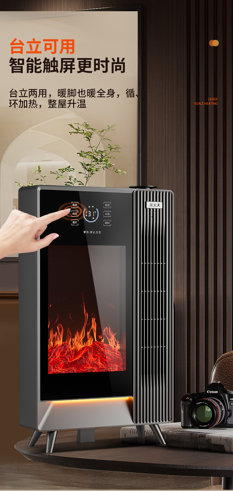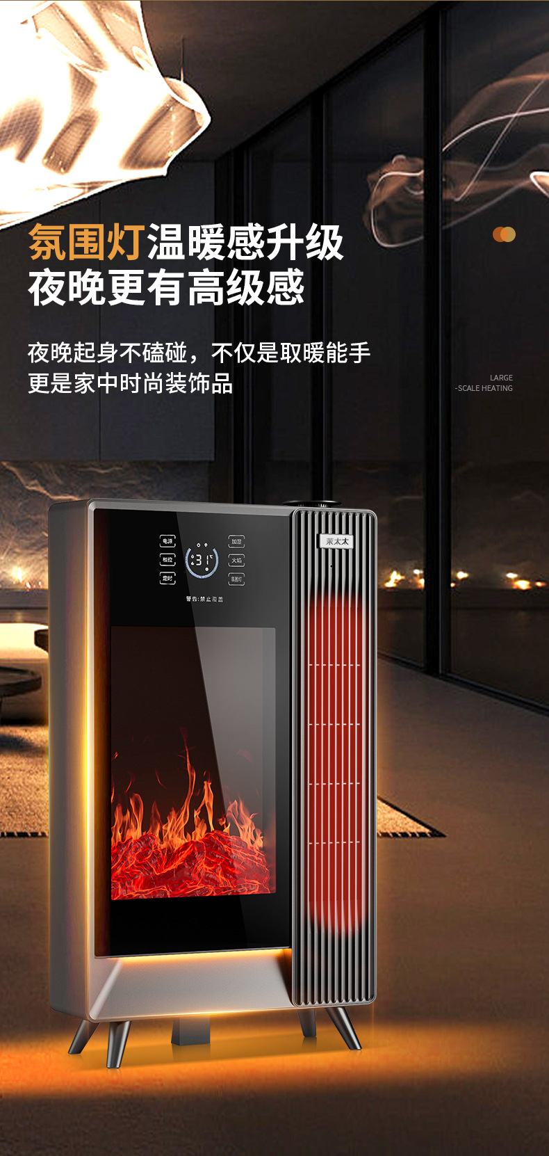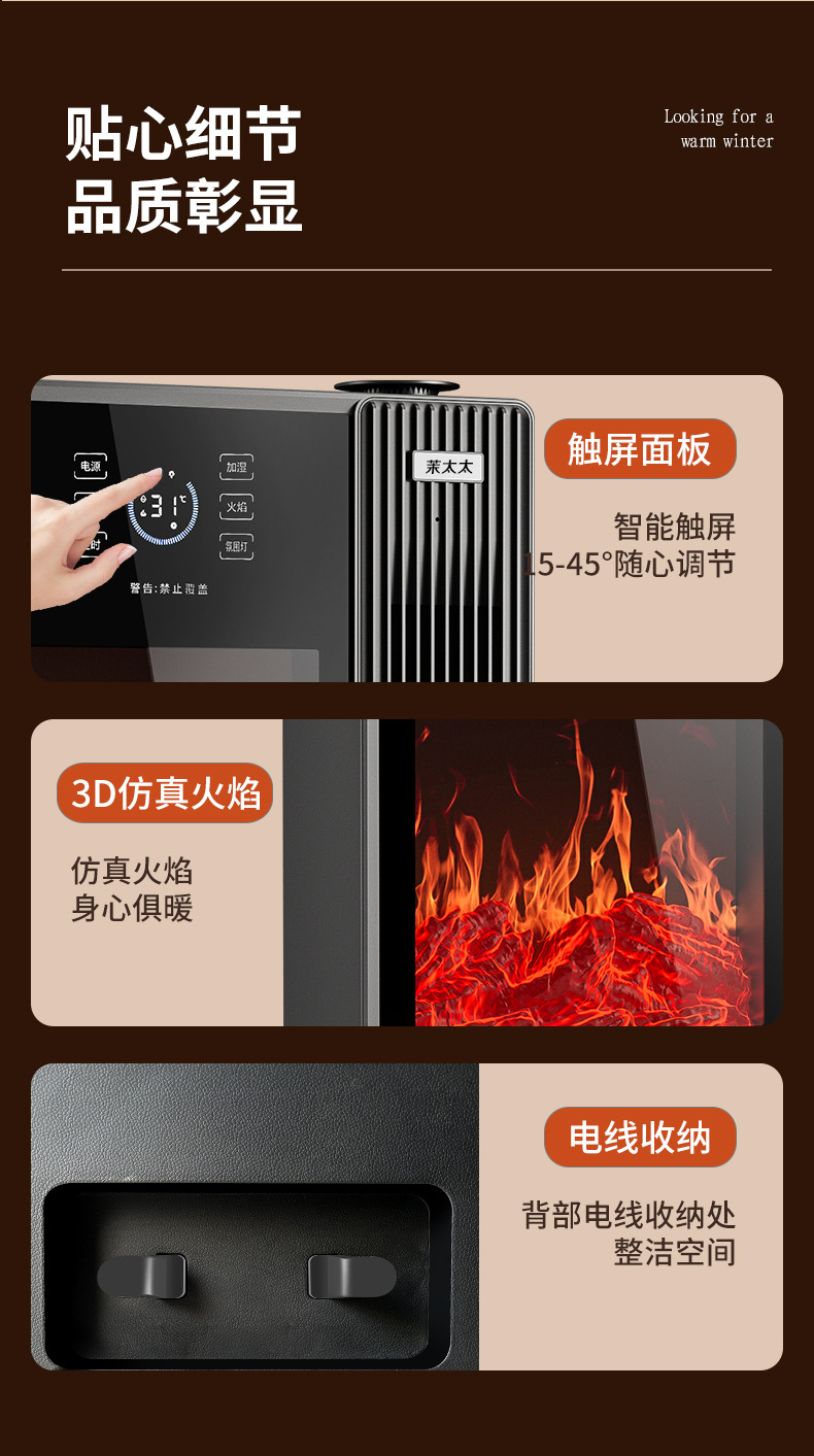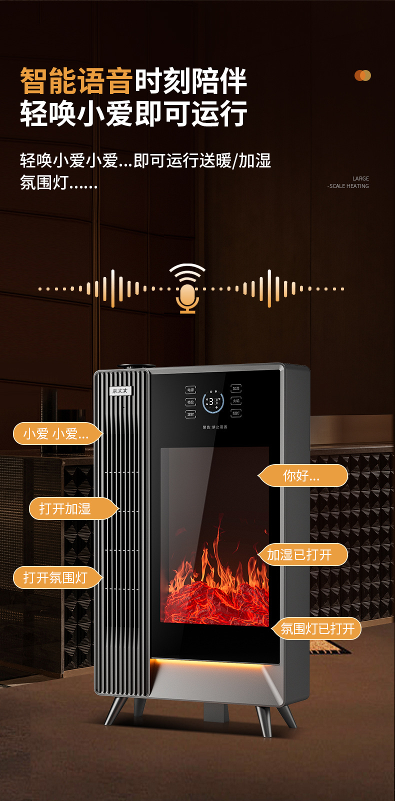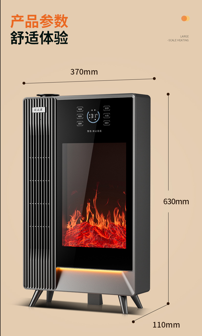 겨울철 가정용 수직형 그래핀 히터, 에너지 절약형 가습 전기히터, 음성 3D 시뮬레이션 불꽃 벽난로 히터스토어 가기