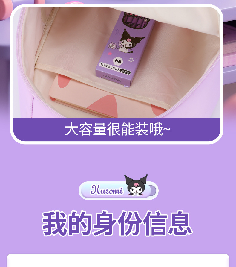 쿠로미 학교 가방 유치원 소녀 어린이 배낭 아기 3 세 학교 소녀 귀여운 소규모 학급 소녀 초경량