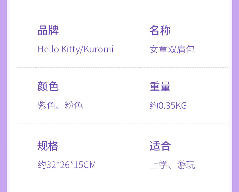 쿠로미 학교 가방 유치원 소녀 어린이 배낭 아기 3 세 학교 소녀 귀여운 소규모 학급 소녀 초경량스토어 가기