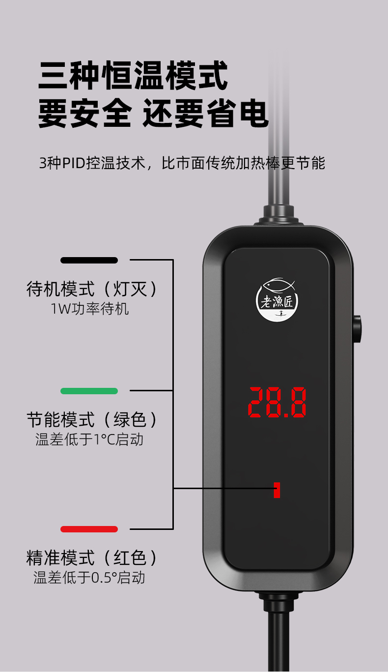 Old Fisherman 가열 막대 자동 항온 수조 온도 조절 히터 저수위 거북이 소형 탱크 가열 막대스토어 가기