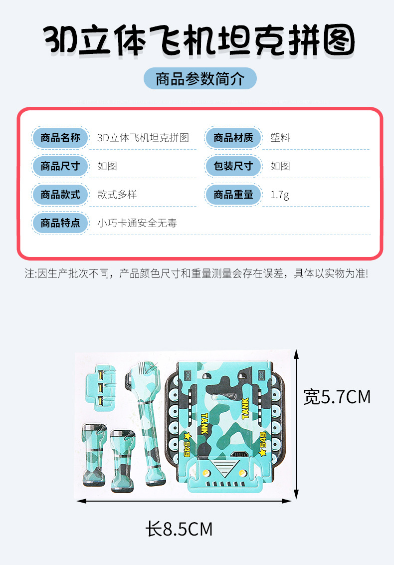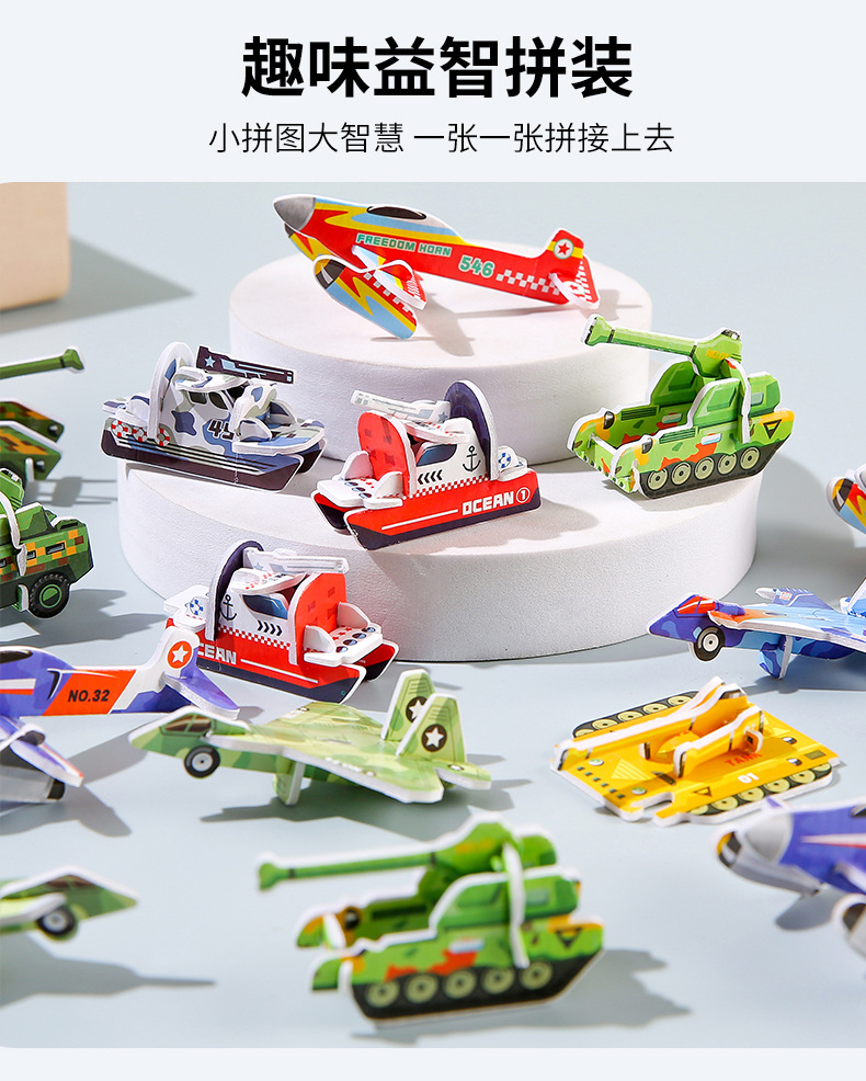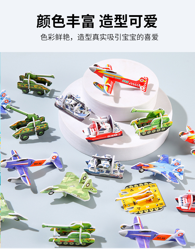 3D 비행기 탱크 입체 퍼즐 종이 어린이 크리 에이 티브 DIY 유치원 조기 교육 손으로 조립 장난감스토어 가기
