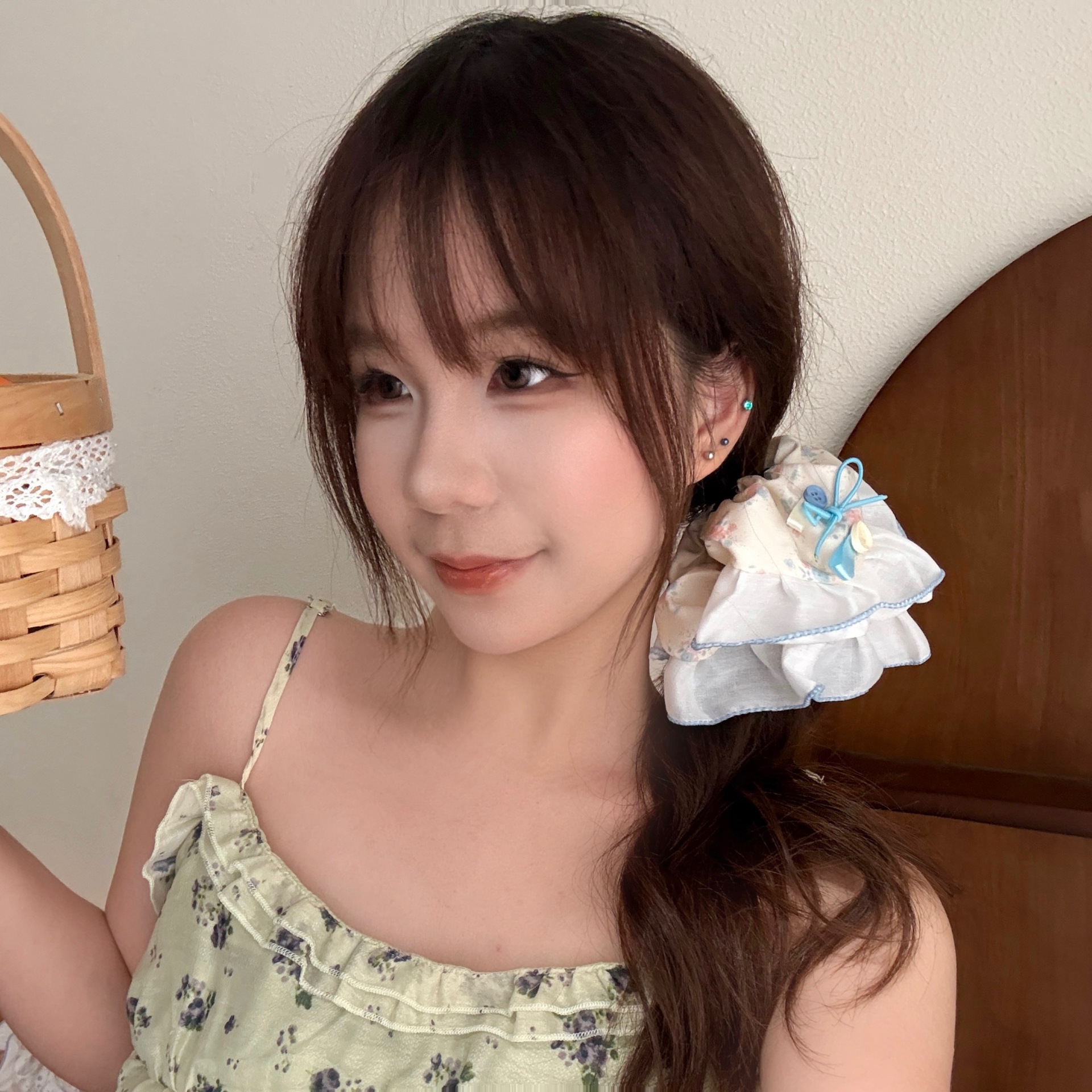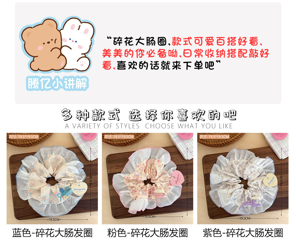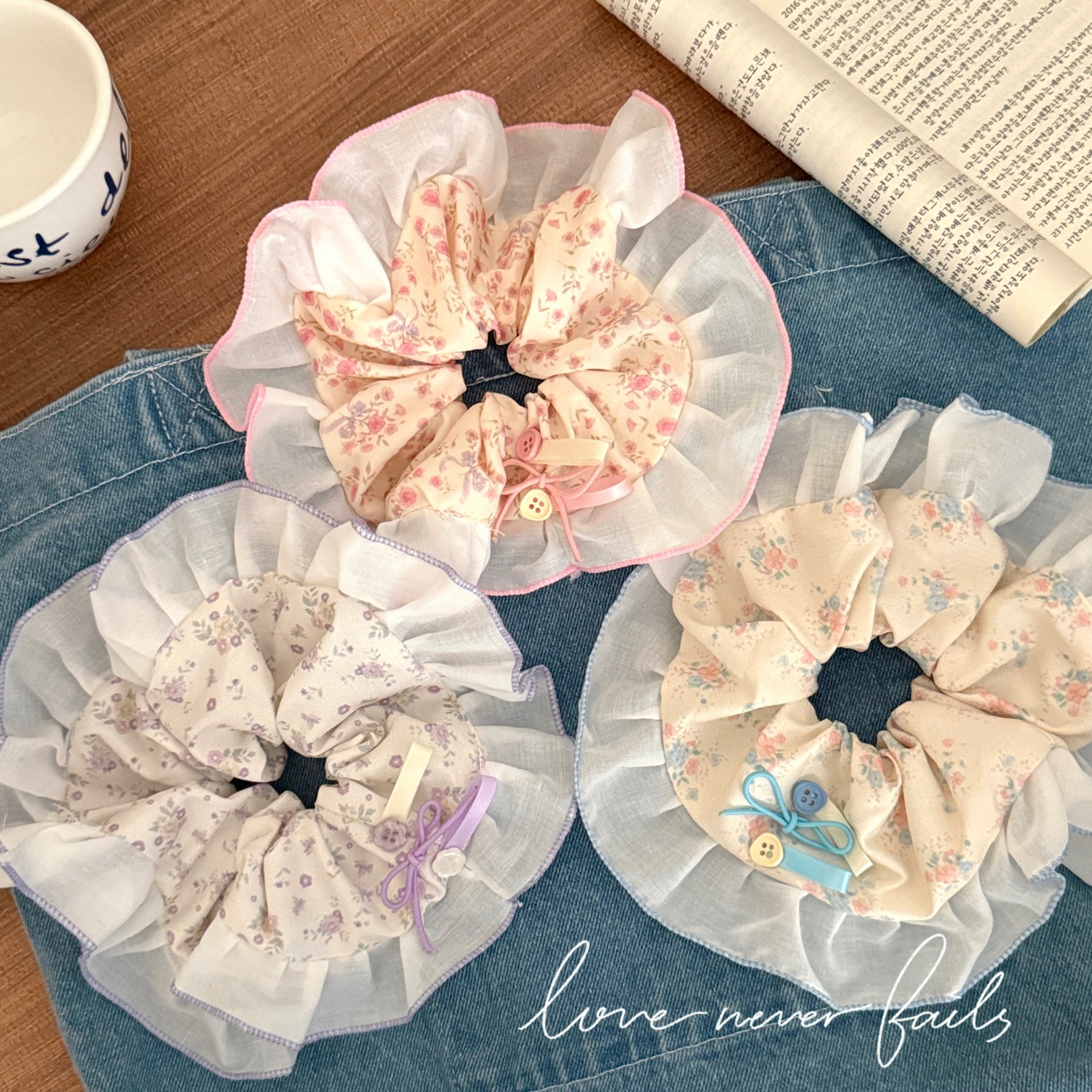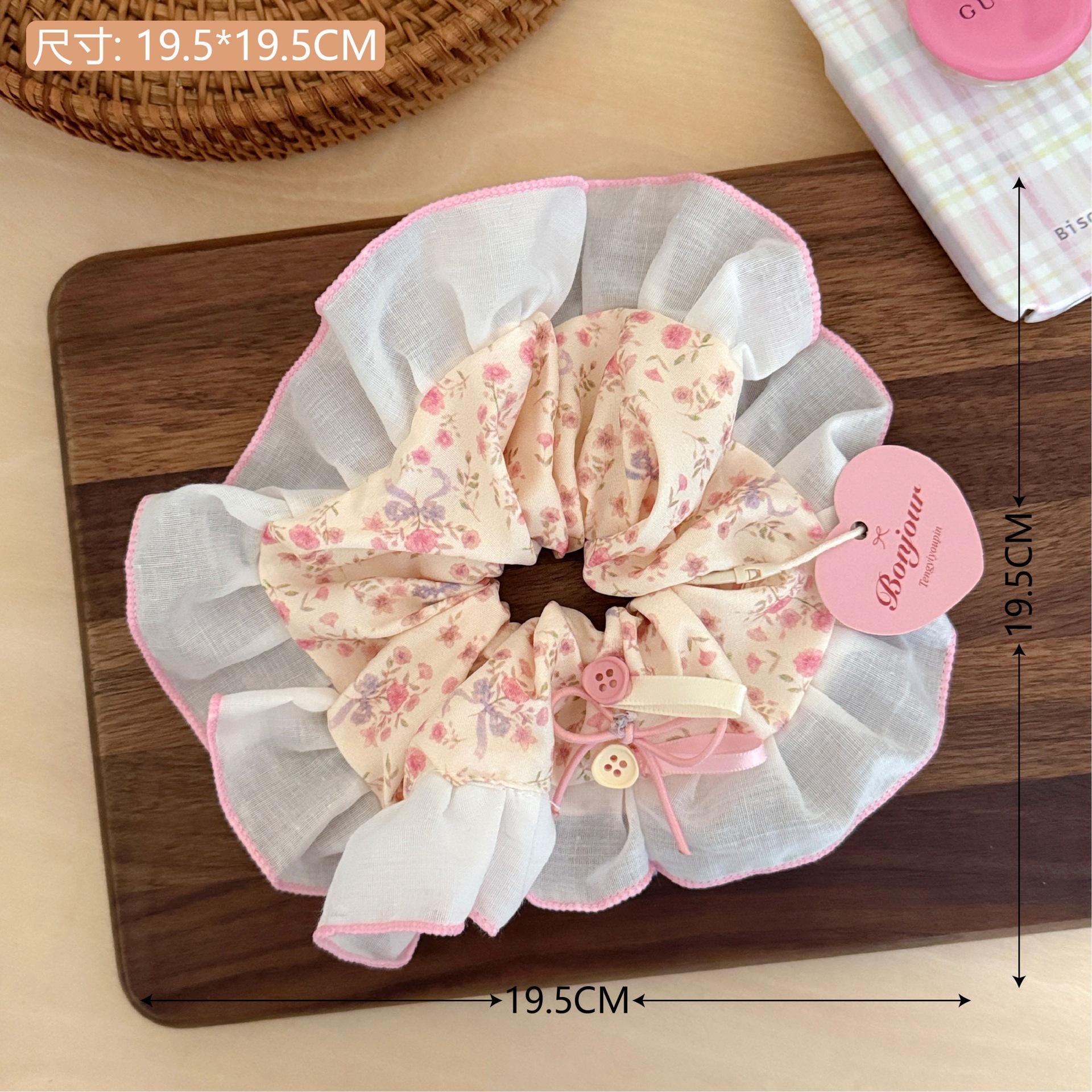 여름 신상 버튼 리본 꽃무늬 주름 머리끈, 달콤한 소녀스러운 하트, 다용도 머리끈, 포니테일 헤어 액세서리스토어 가기