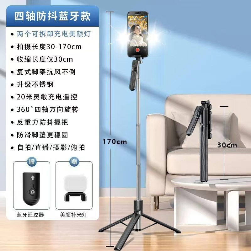 블루투스 셀카봉 삼각대 흔들림 방지 휴대폰 범용 360 ° 라이브 스트리밍을 위한 회전식 다기능 휴대용 휴대폰 홀더스토어 가기