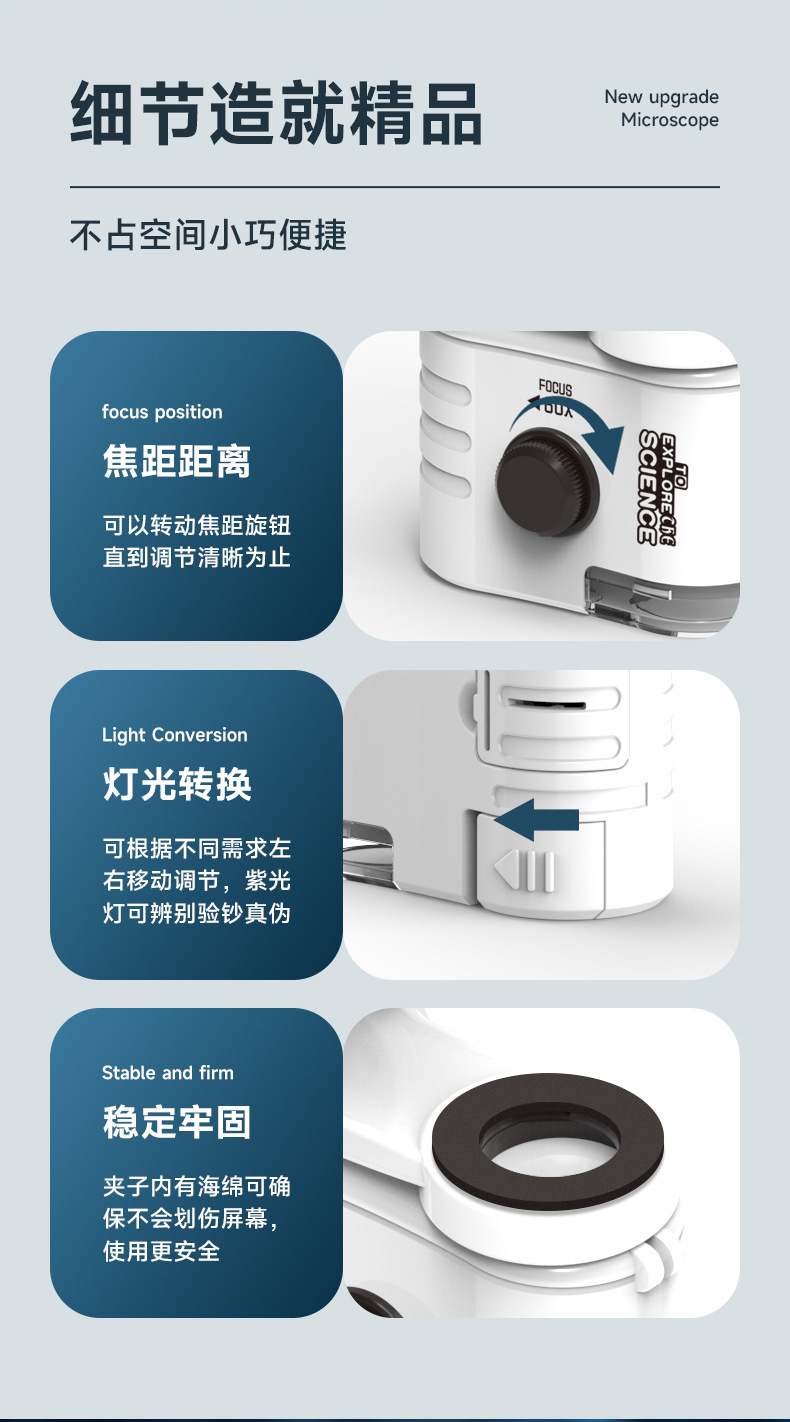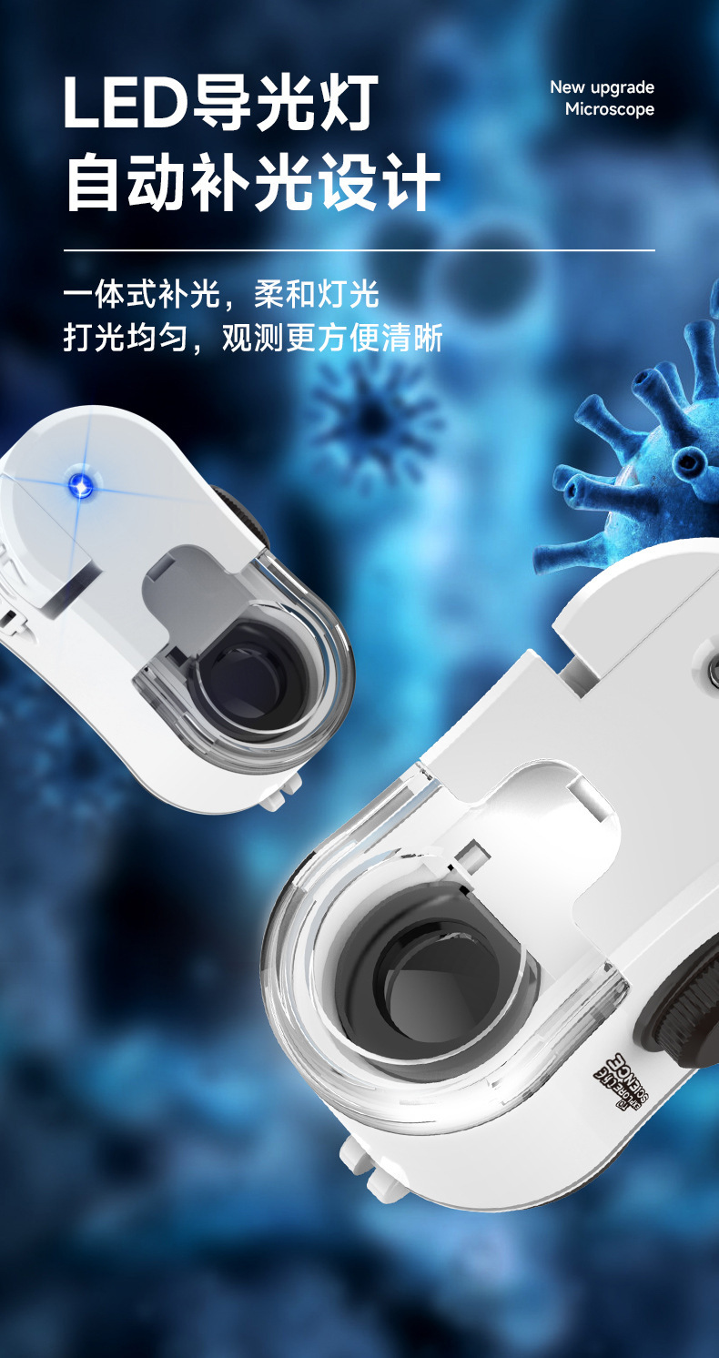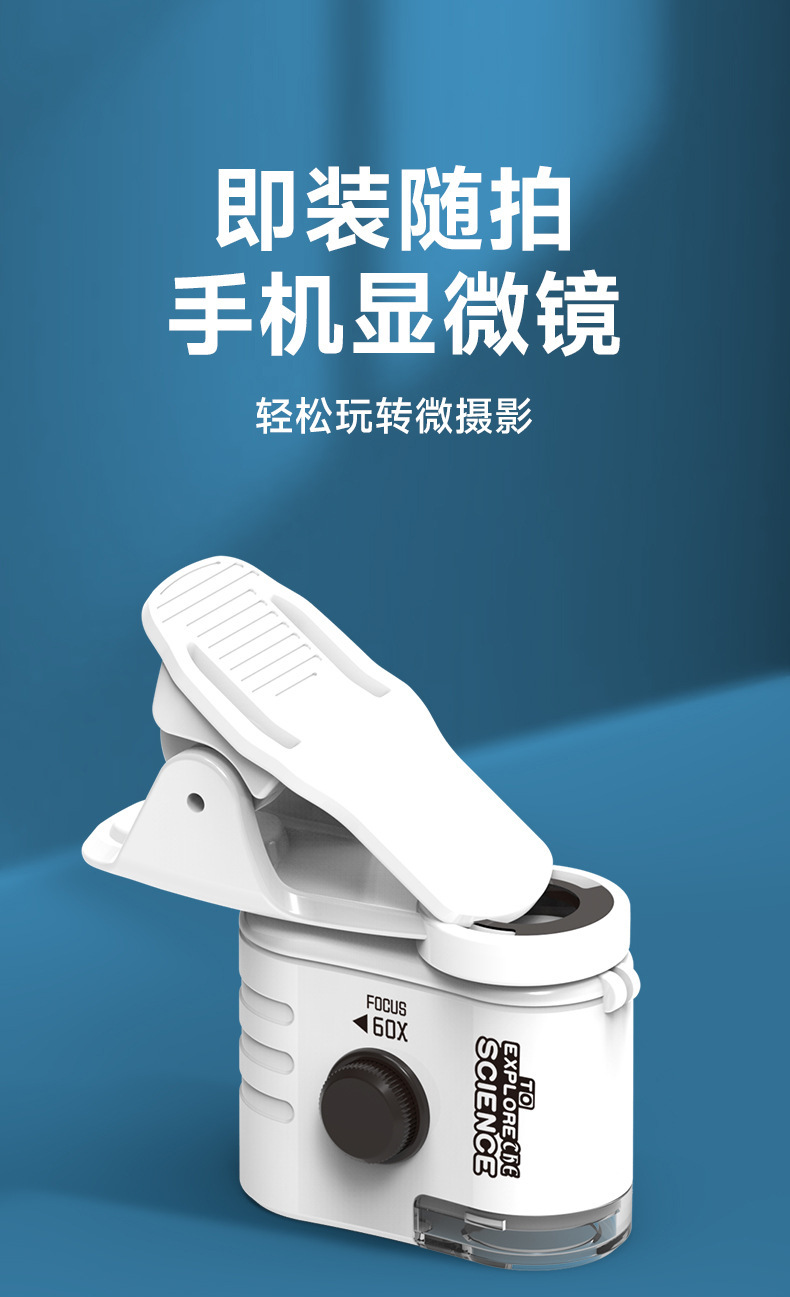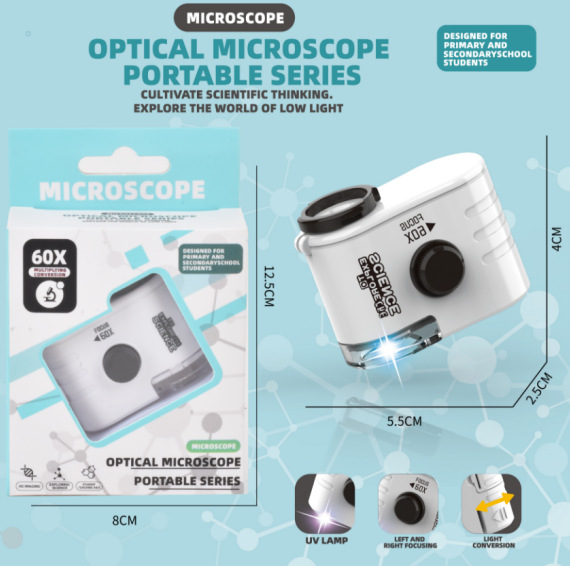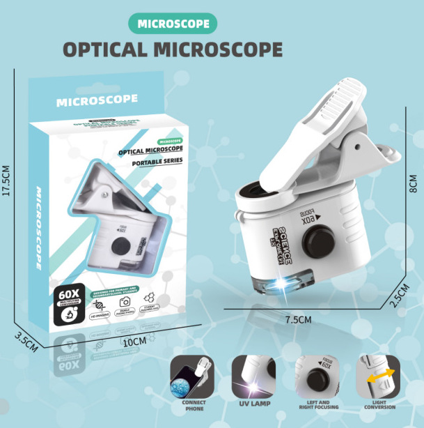 휴대 전화 클립이 포함된 국경 간 미니 광학 현미경 과학 실험 세트 초등학생을 위한 휴대용 과학 및 교육 최첨단 장난감스토어 가기