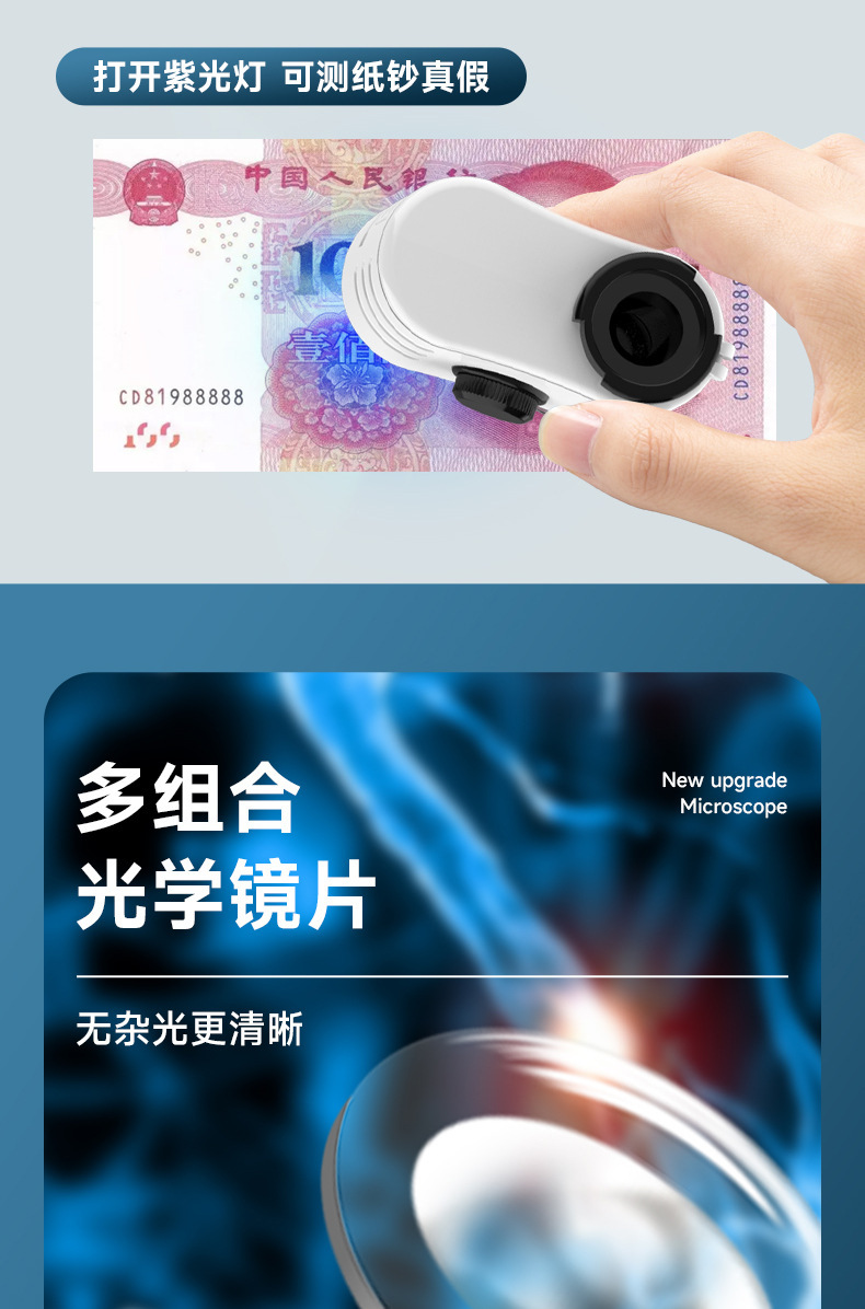 • 60x 미니 휴대용 현미경 + 휴대폰 홀더(영어 컬러 박스)