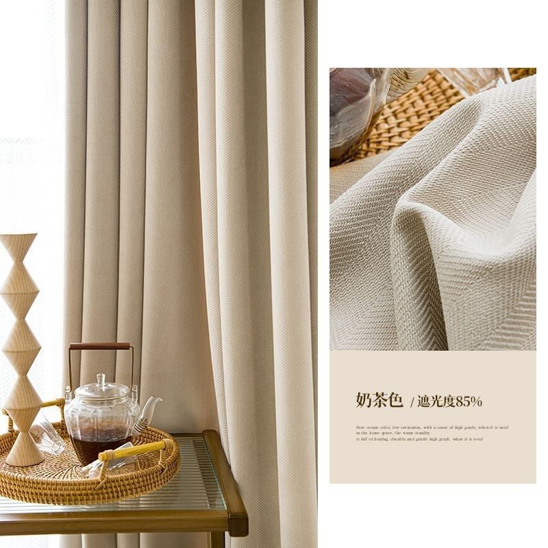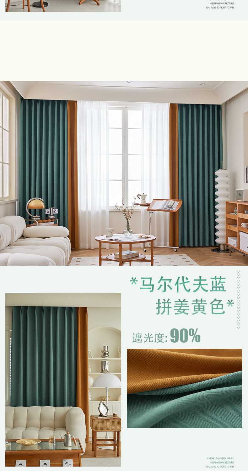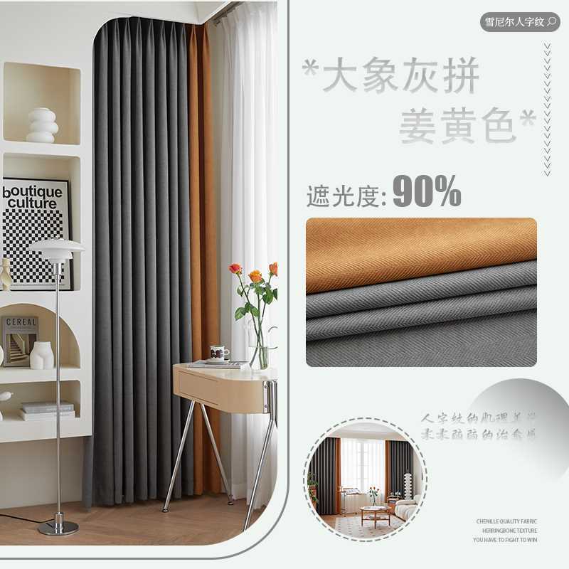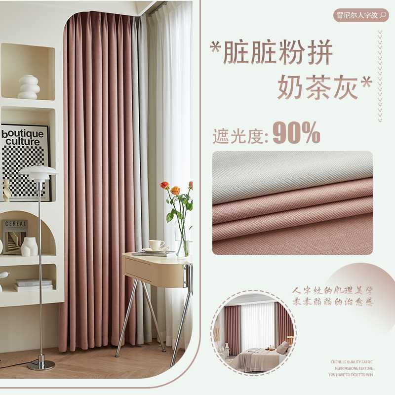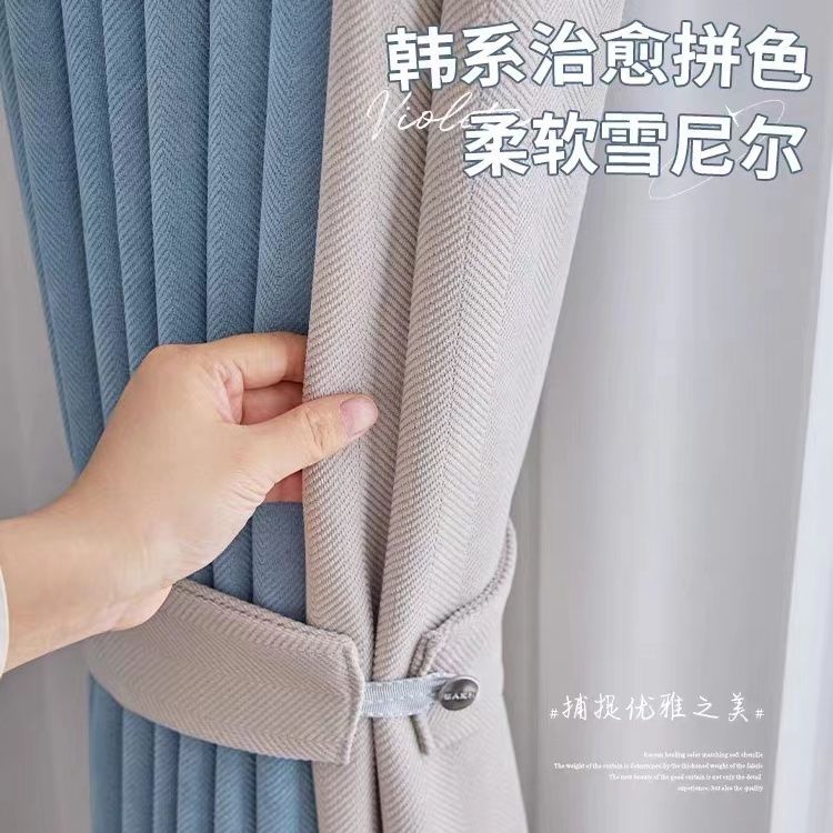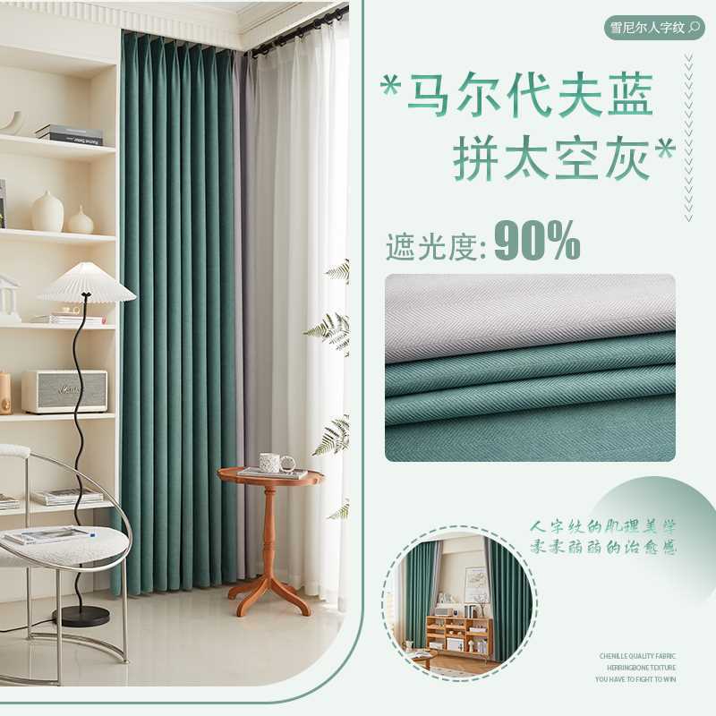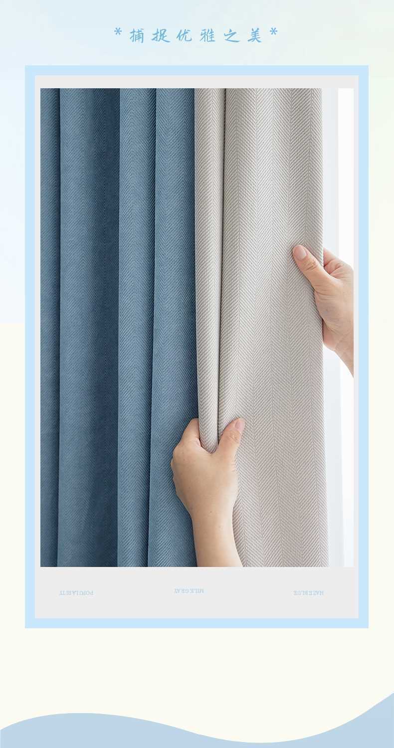 헤링본 셔닐 커튼 빛 차단 2025 새로운 스타일 ins 스타일 침실 거실 컬러 매칭 일본식 헤이즈 블루 코튼과 린넨