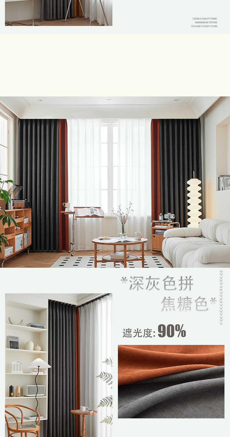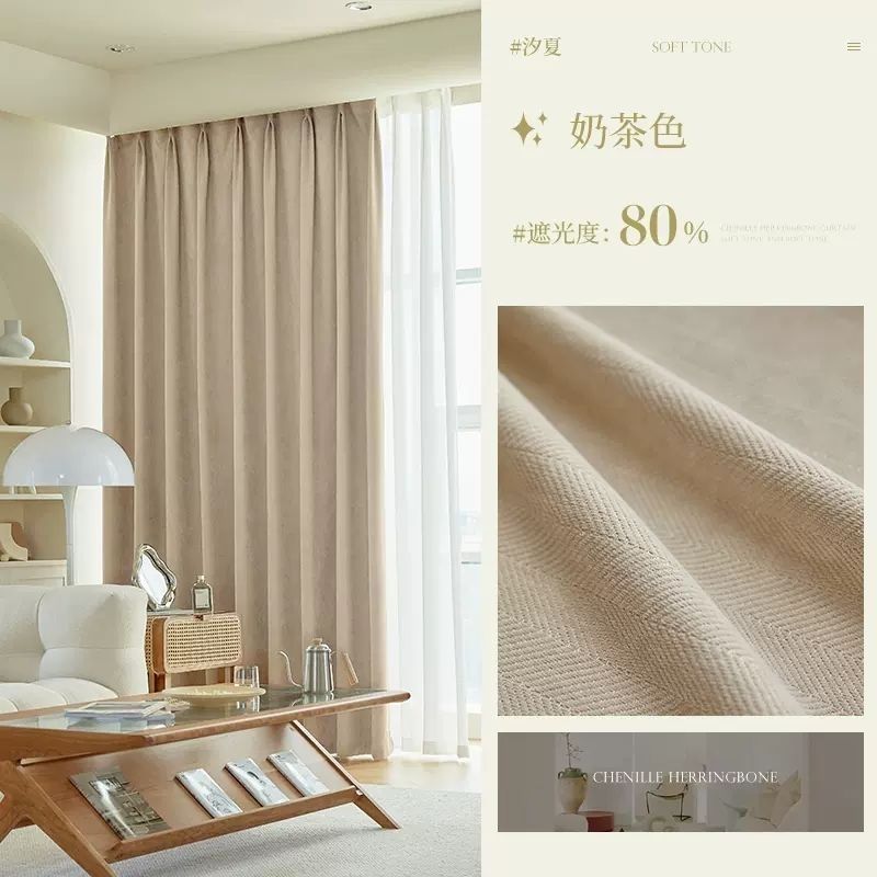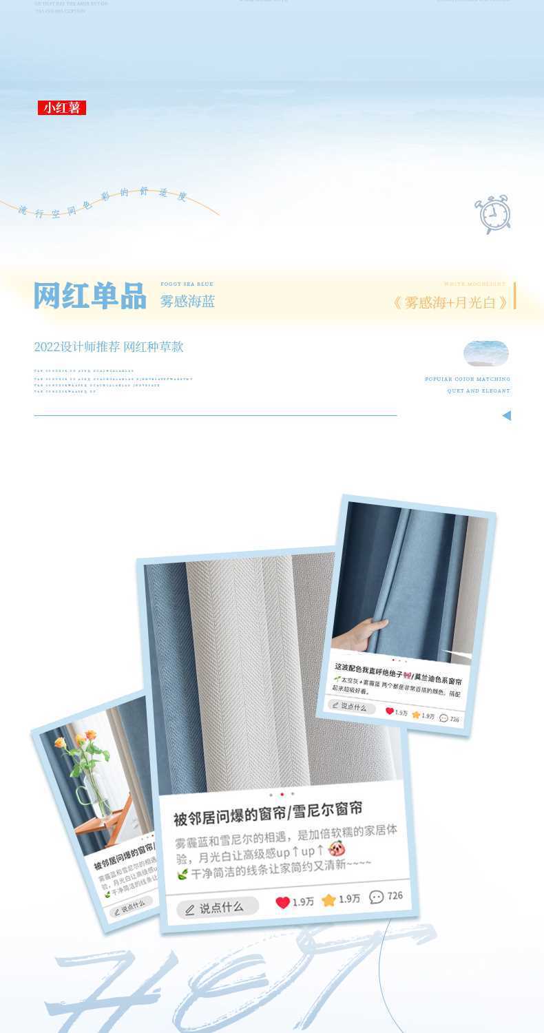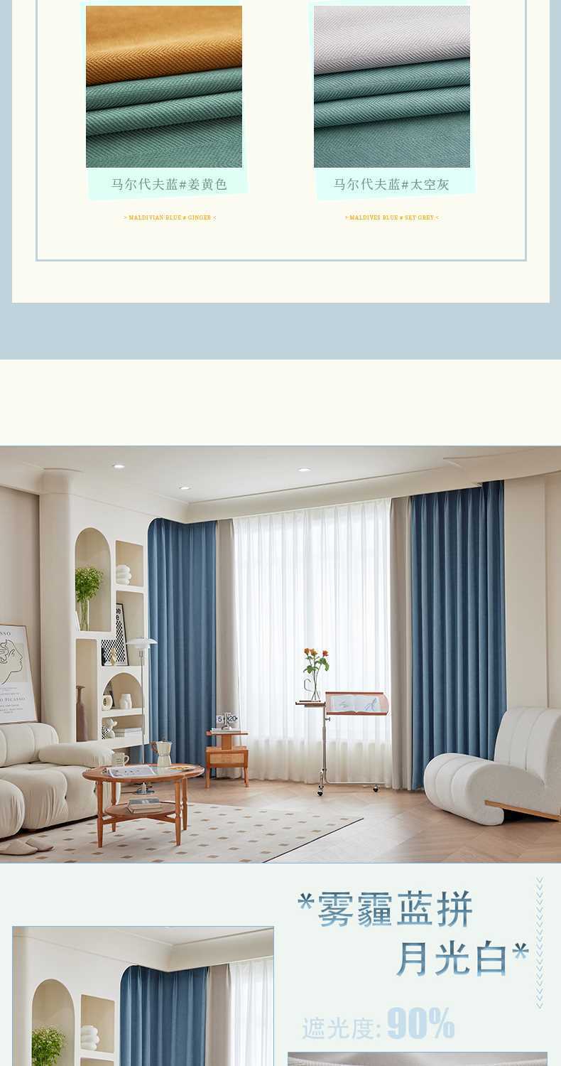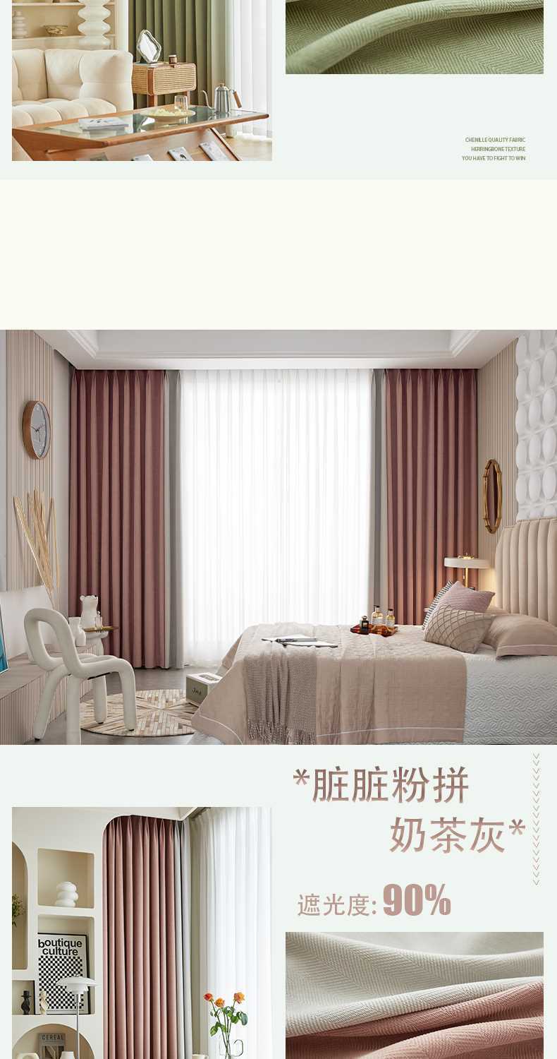 헤링본 셔닐 커튼 빛 차단 2025 새로운 스타일 ins 스타일 침실 거실 컬러 매칭 일본식 헤이즈 블루 코튼과 린넨
