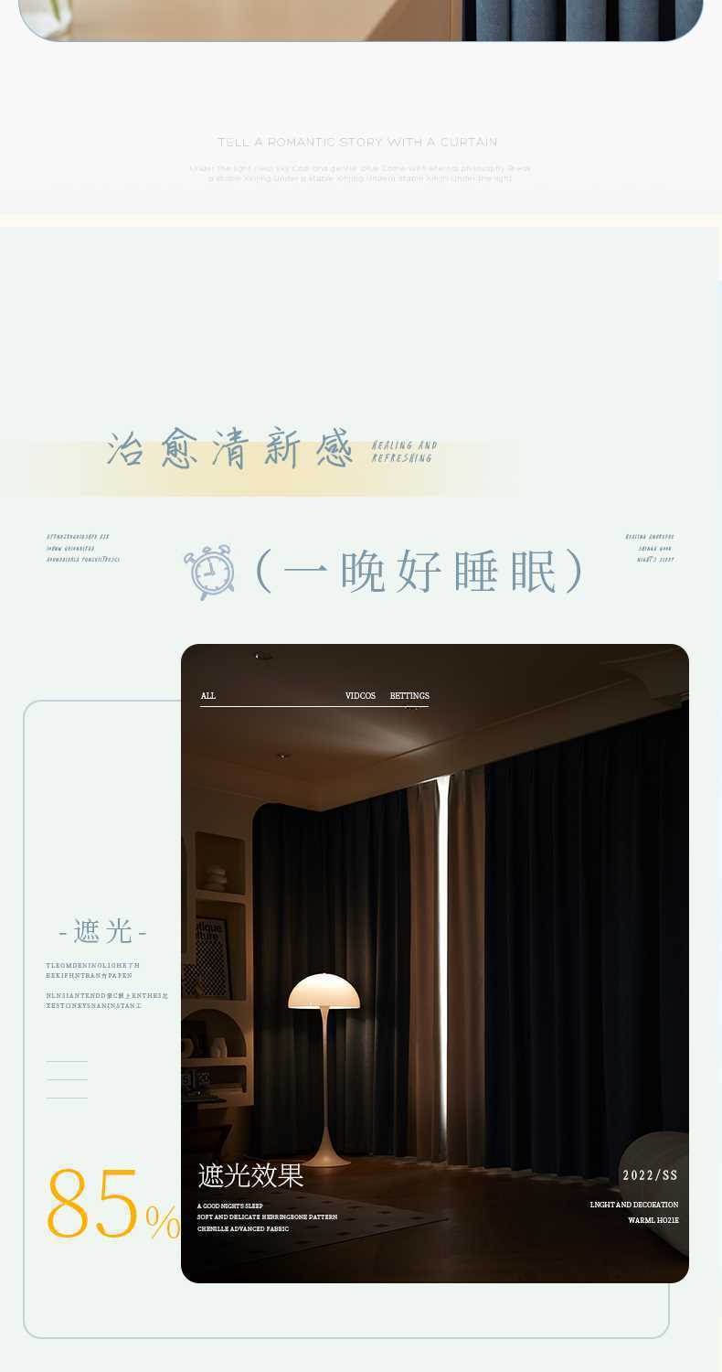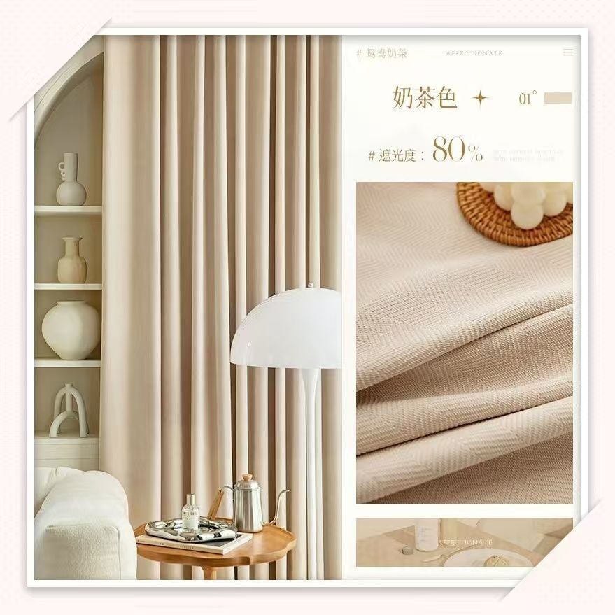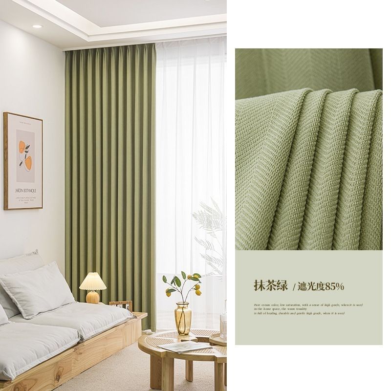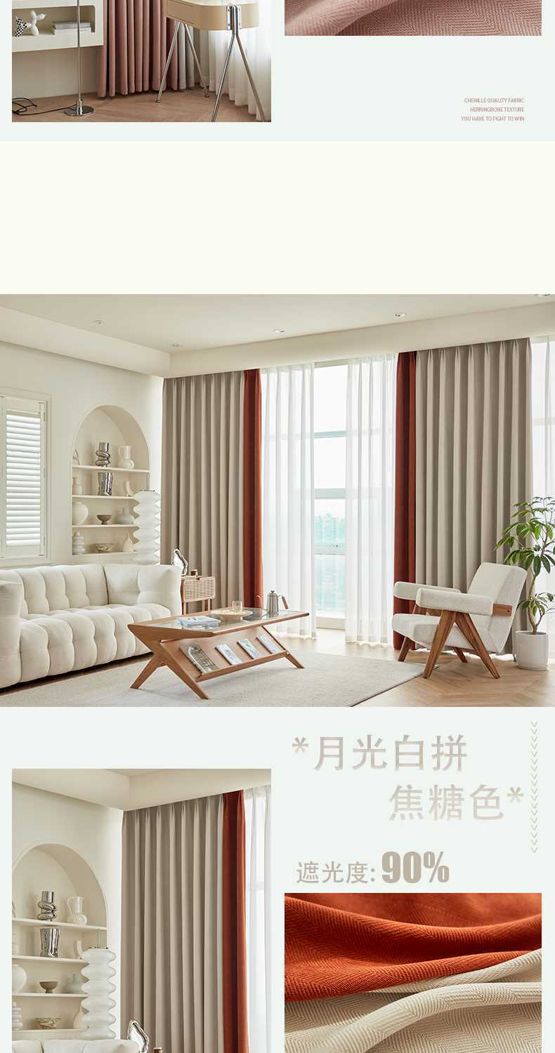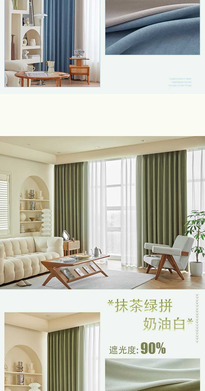 헤링본 셔닐 커튼 빛 차단 2025 새로운 스타일 ins 스타일 침실 거실 컬러 매칭 일본식 헤이즈 블루 코튼과 린넨