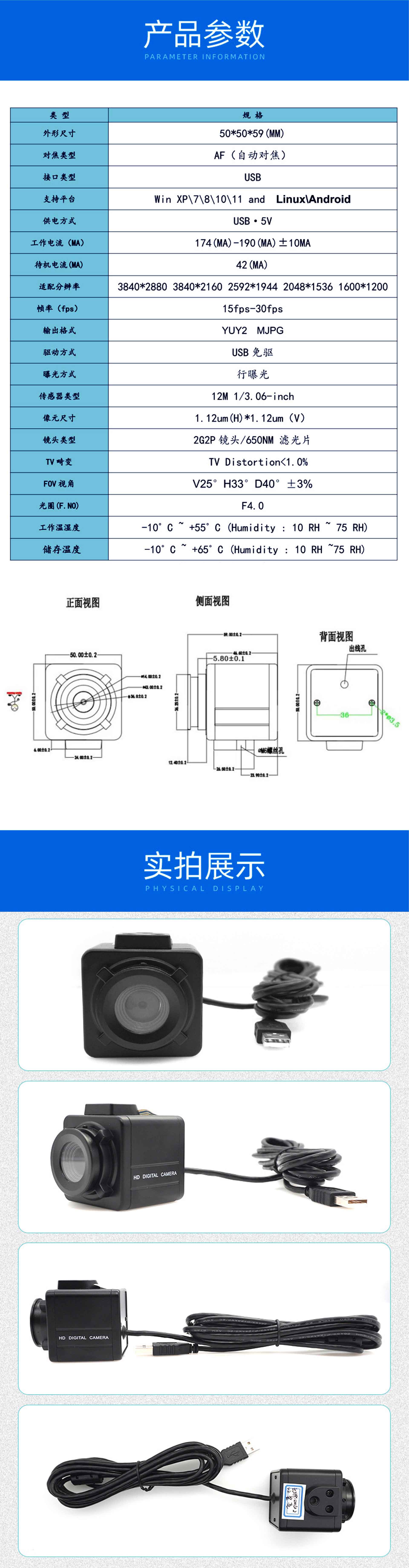 800만 화소 고화질 카메라 자동 초점 USB 컴퓨터 전자상거래 반품 검사 비디오 녹화 포장 모니터링