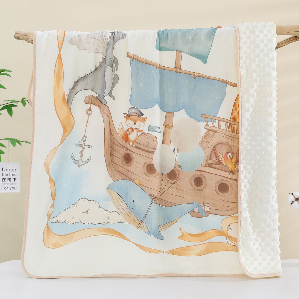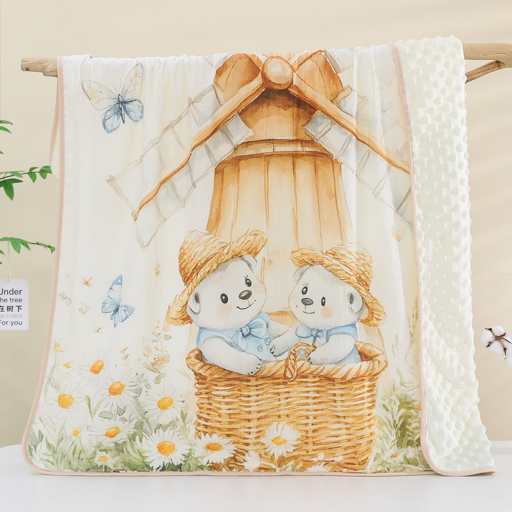아기 비니 담요 만화 면 거즈 인쇄 어린이 에어컨 담요 아기 봄, 가을 진정 담요 커버 담요 재고 있음스토어 가기