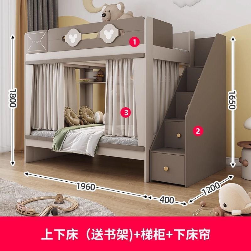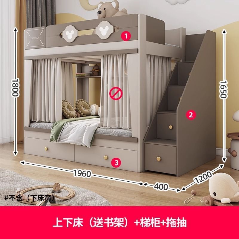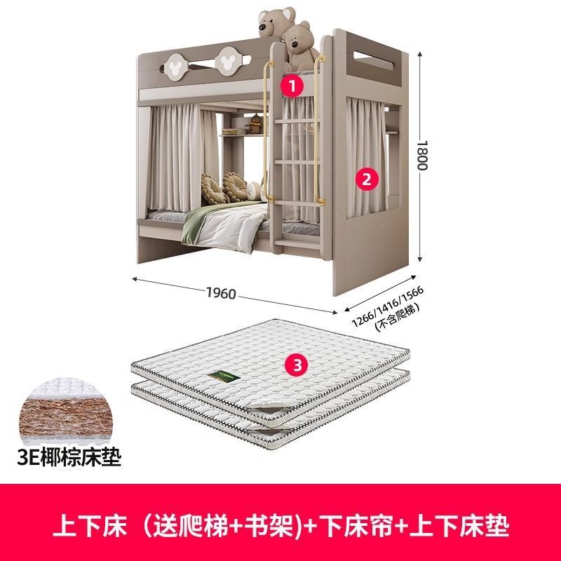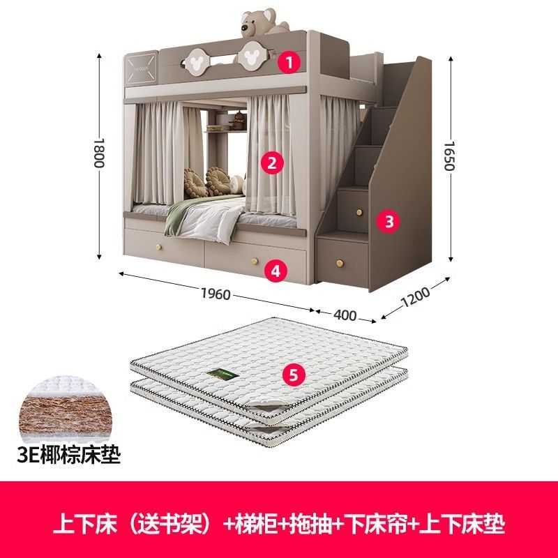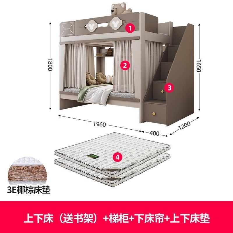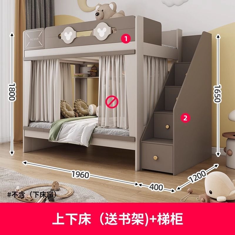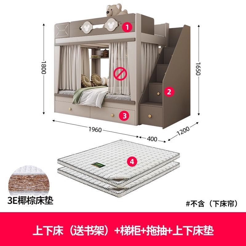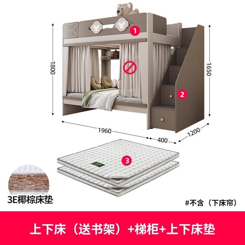 • 상부 침대 + 사다리 캐비닛 + 매트리스 * 2 + 하부 침대 커튼 (원목 생태 보드)