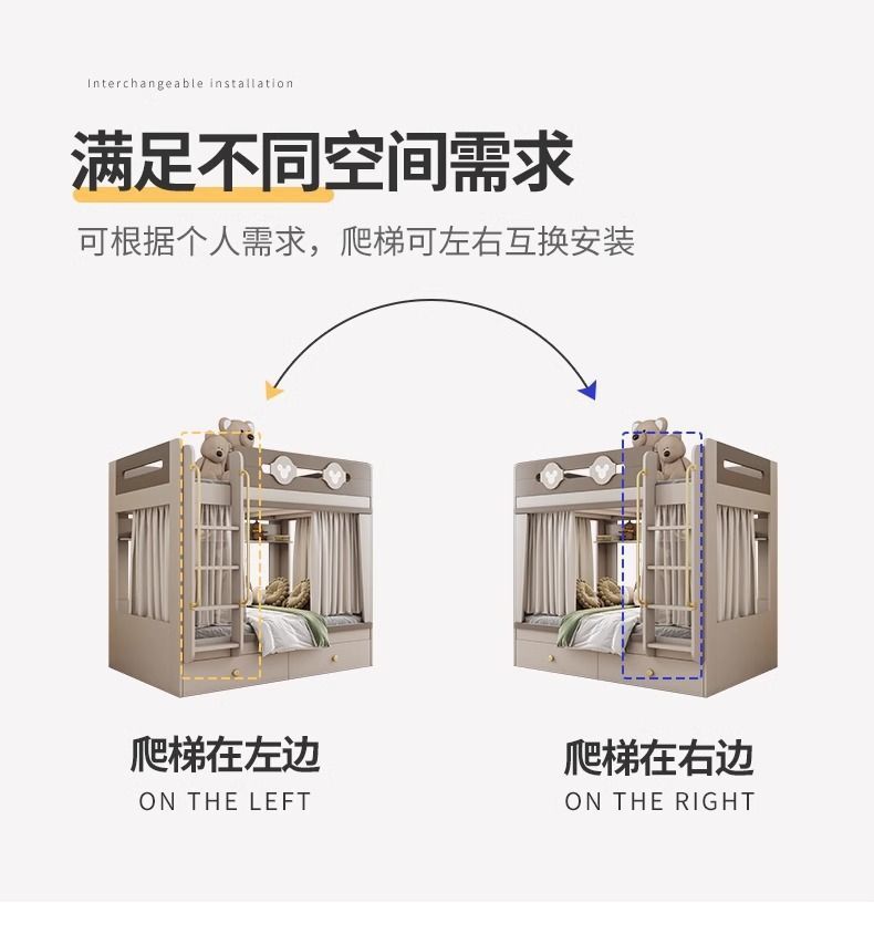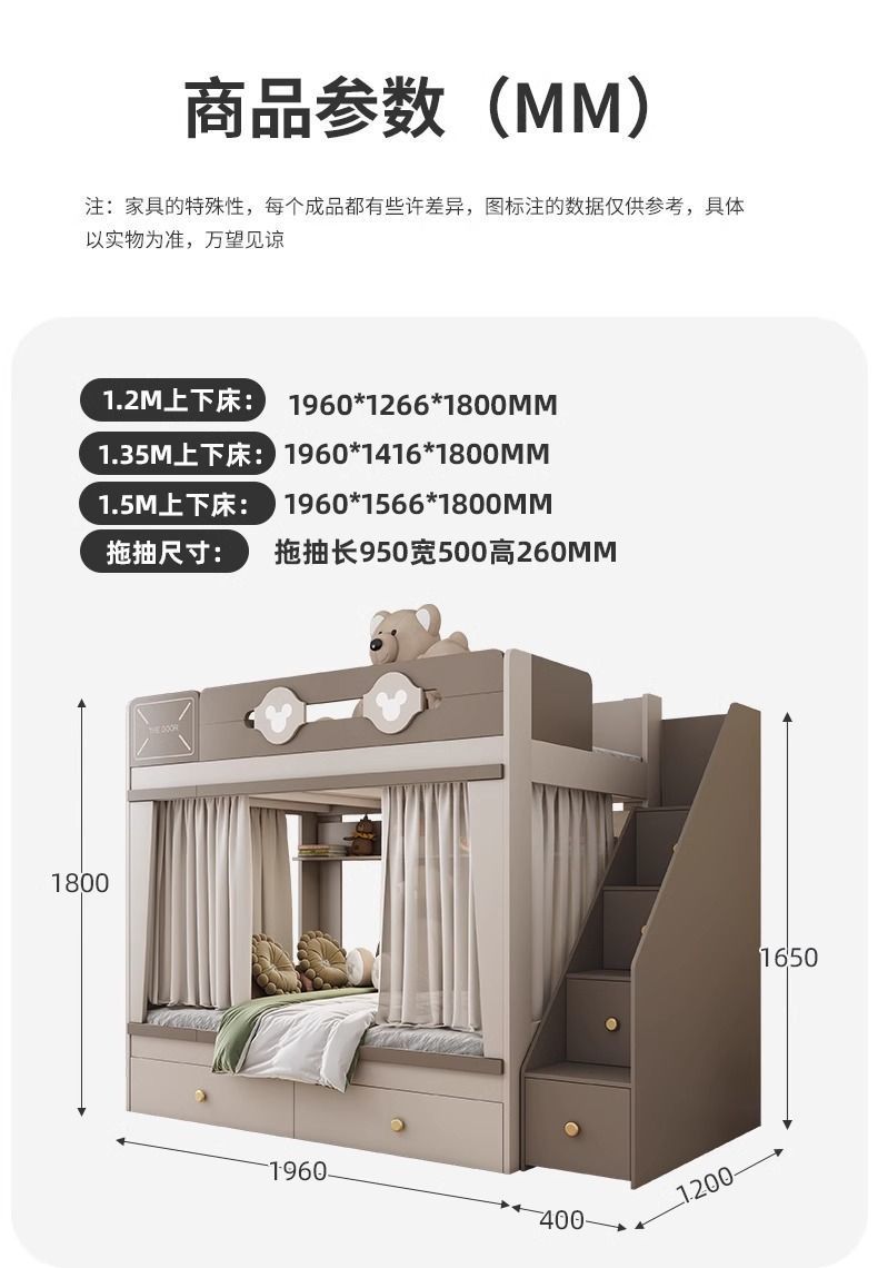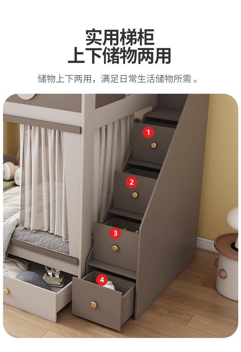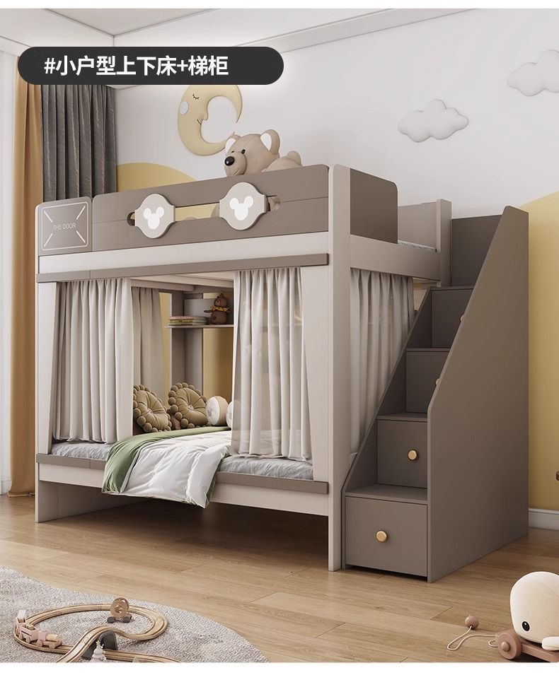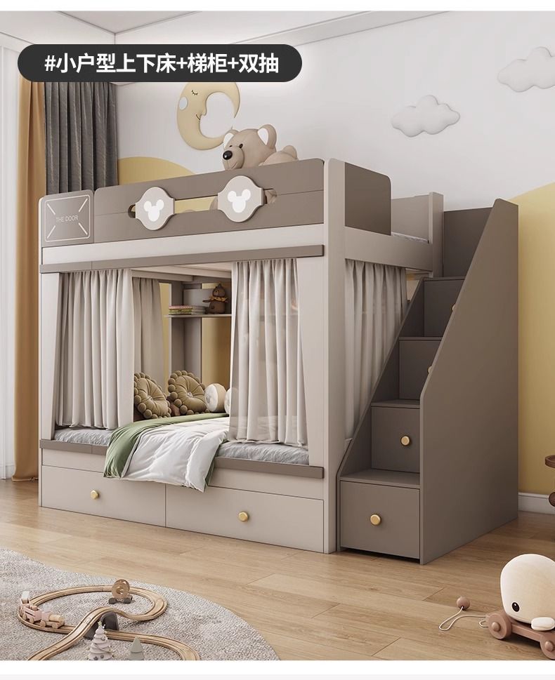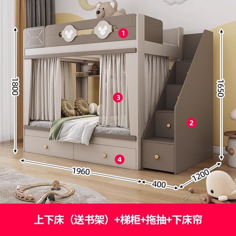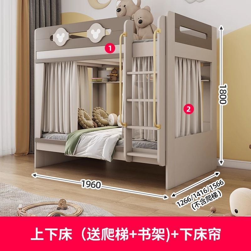 • 상부 침대 + 사다리 캐비닛 + 매트리스 * 2 + 하부 침대 커튼 (원목 생태 보드)