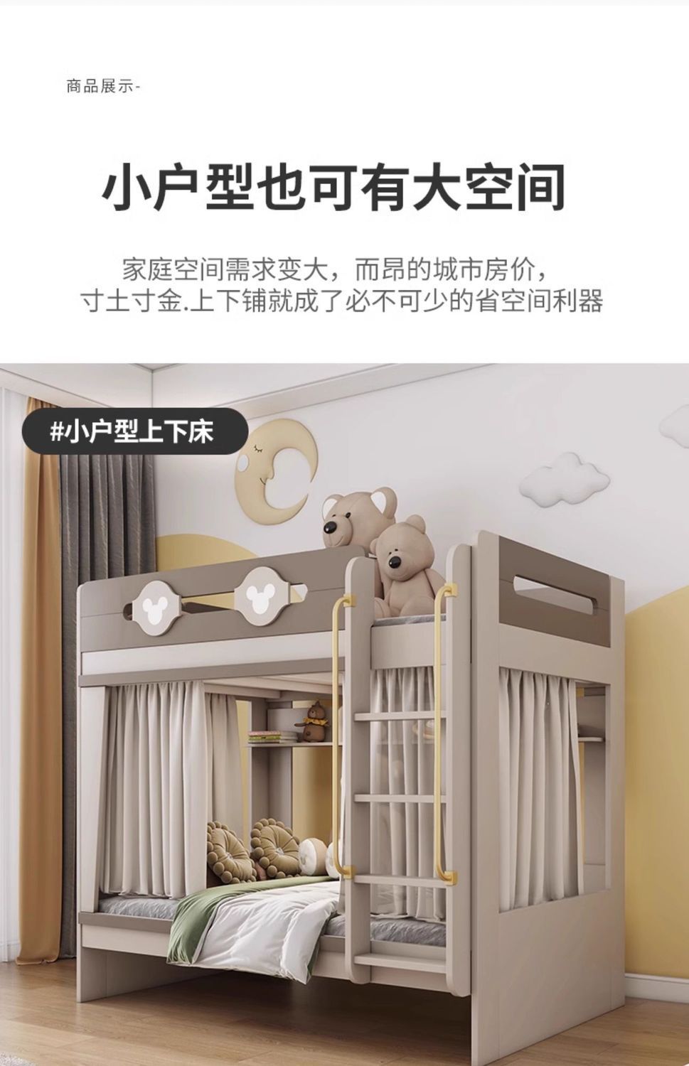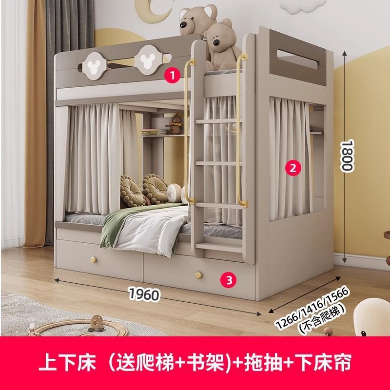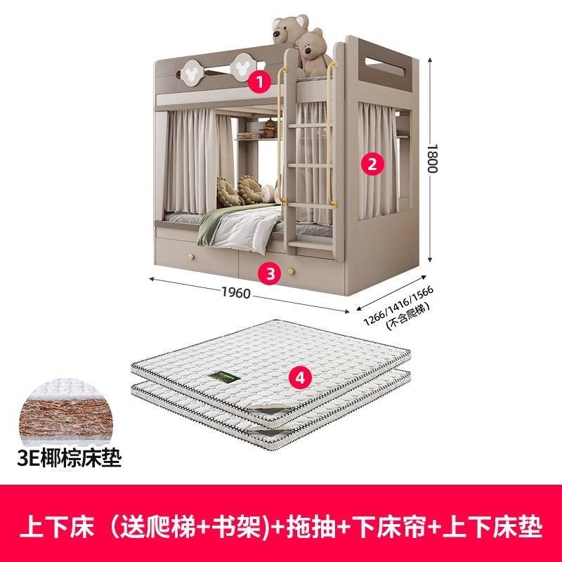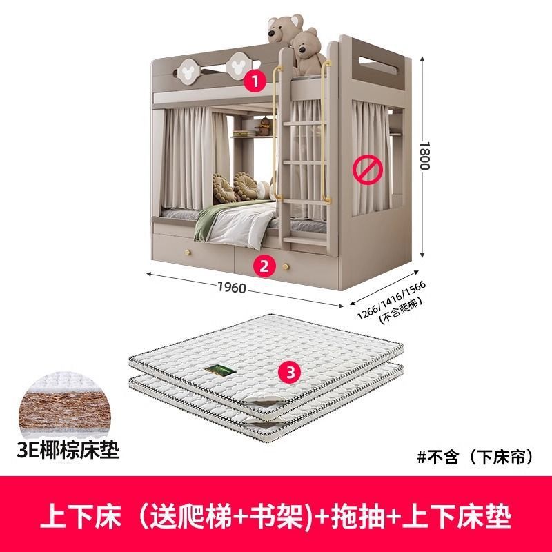 • 상하 침대 + 드래그 + 하부 침대 커튼 + 매트리스 * 2 (원목 생태 보드)
