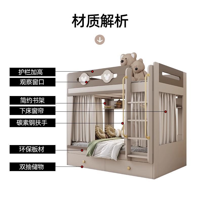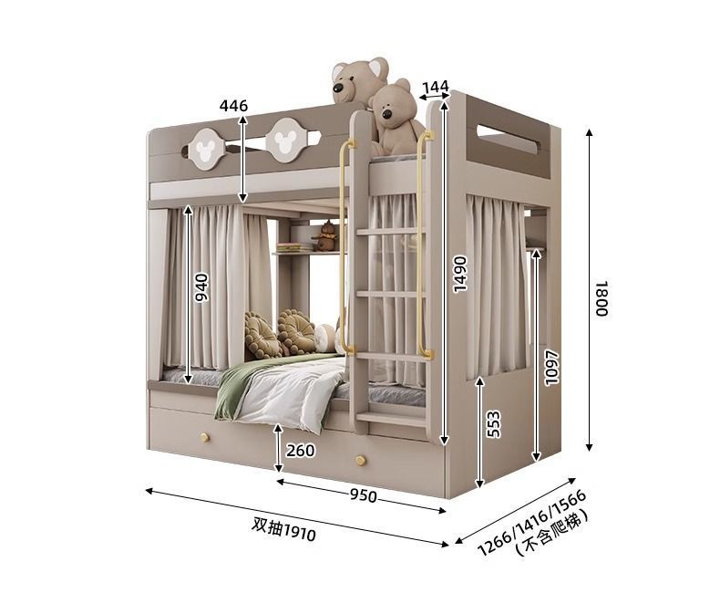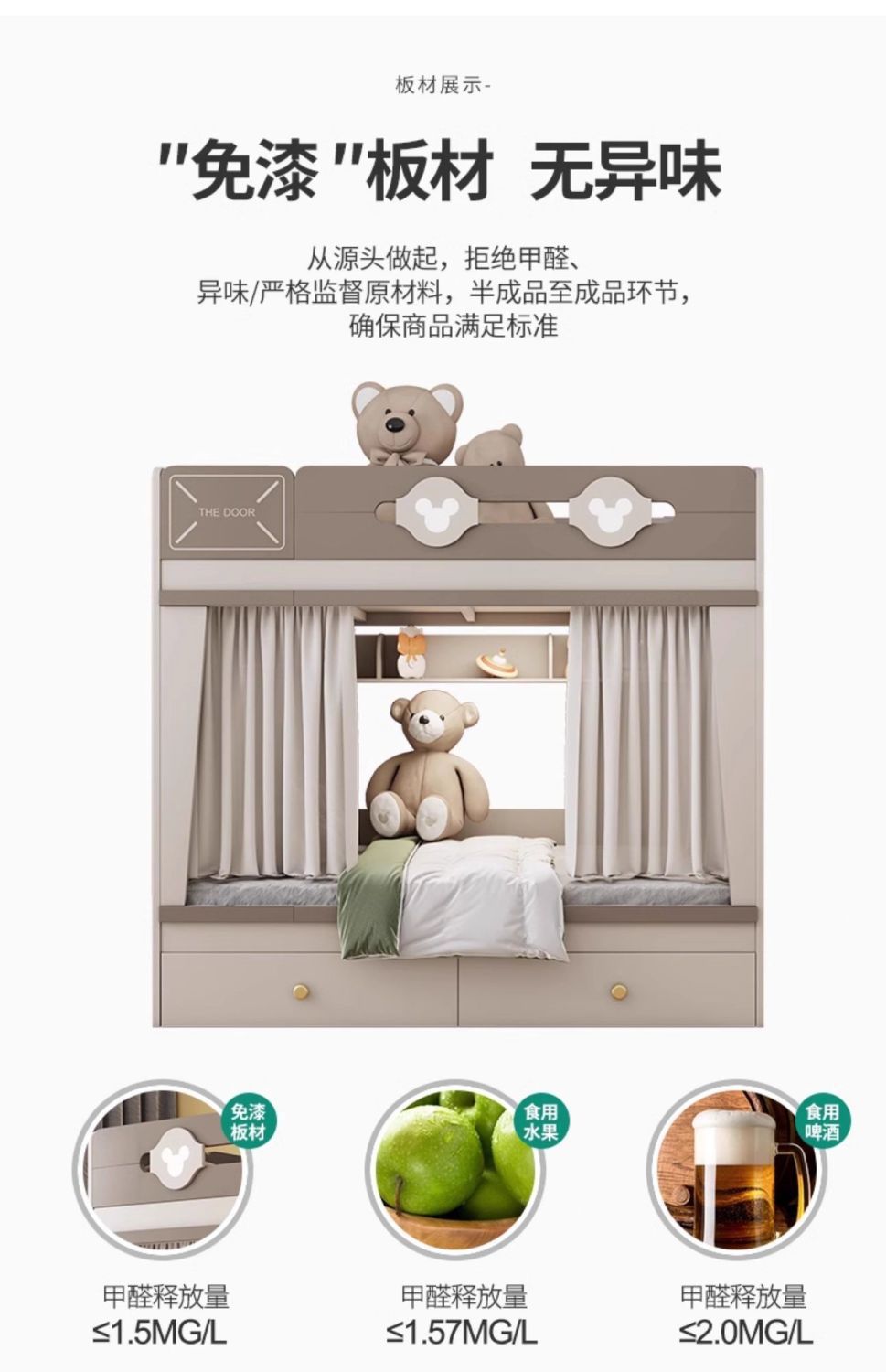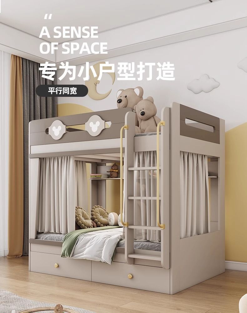 • 상하 침대 + 드래그 + 하부 침대 커튼 (원목 생태 보드)