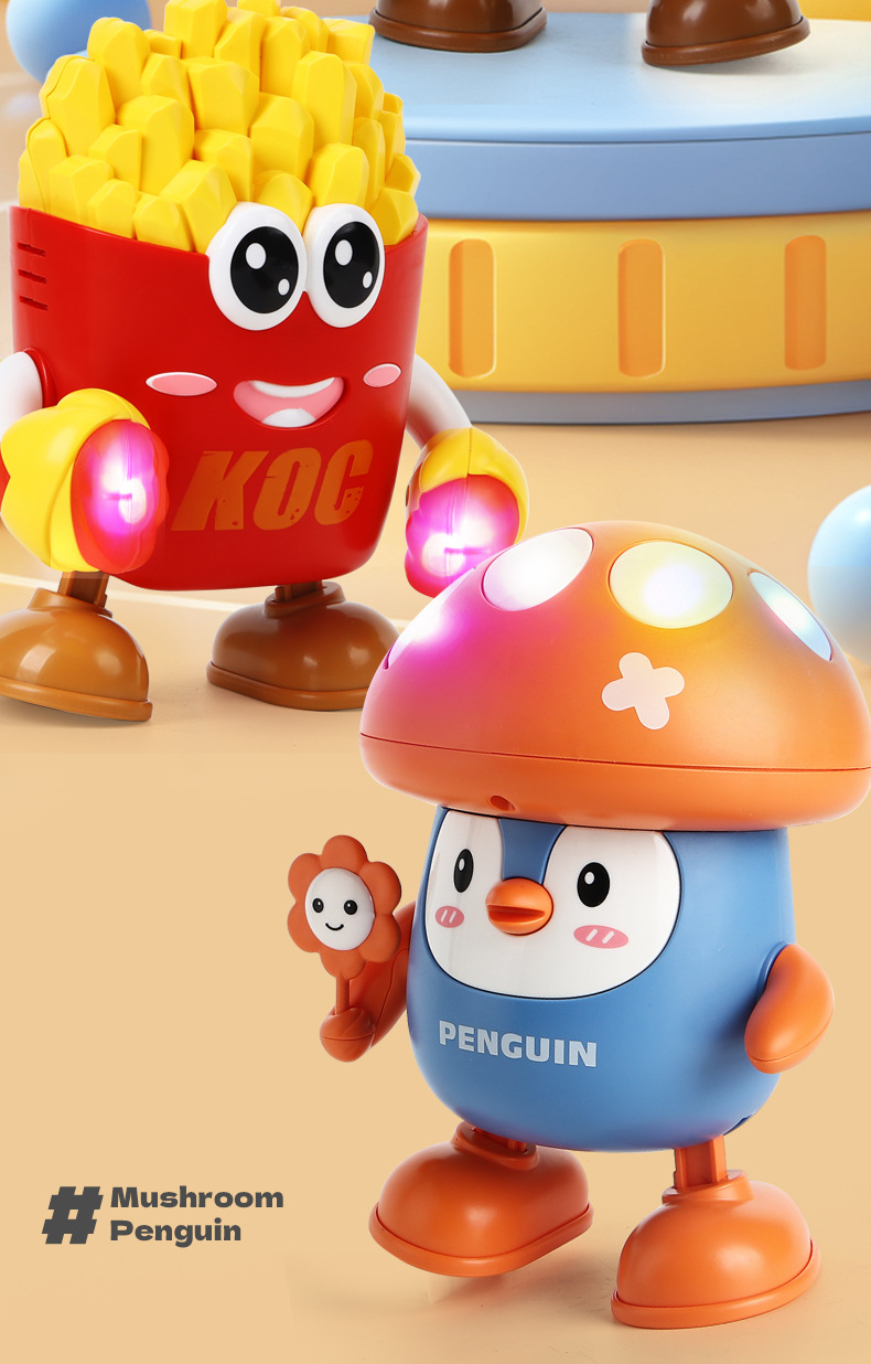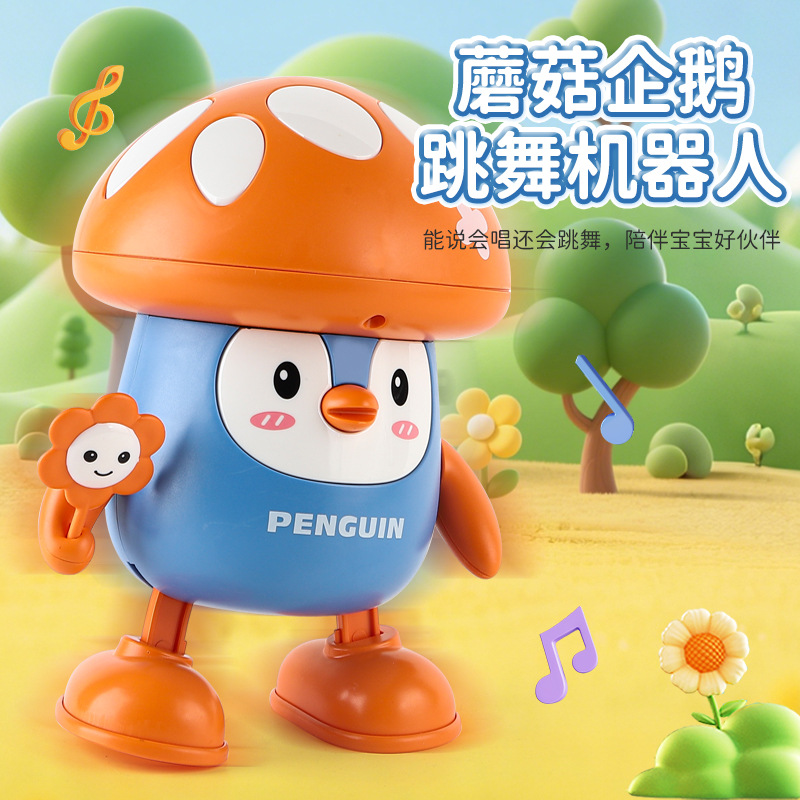 새로운 재미있는 전기 장난감 어린이 인형 버섯 펭귄 춤 로봇 빛 음악 어린이 장난감 배치스토어 가기