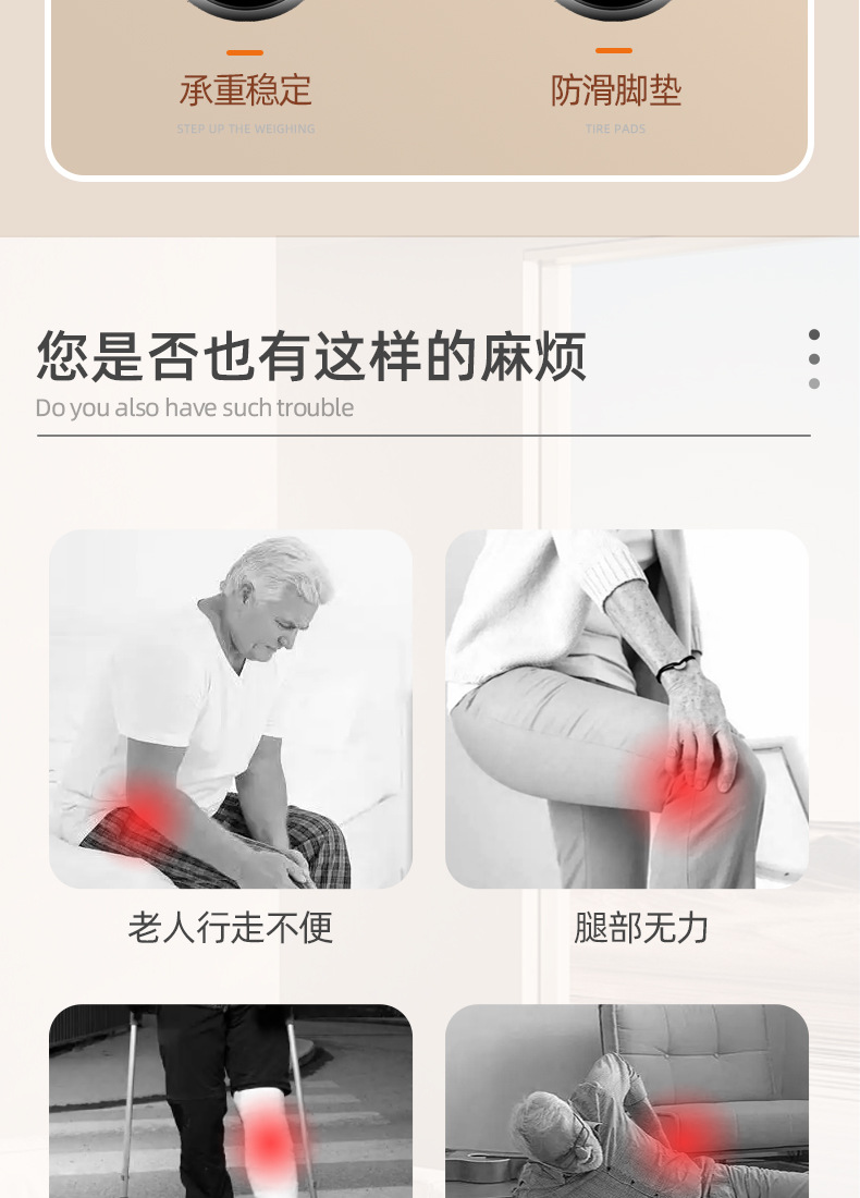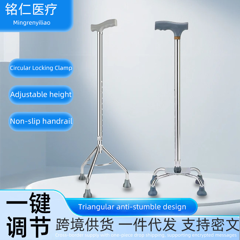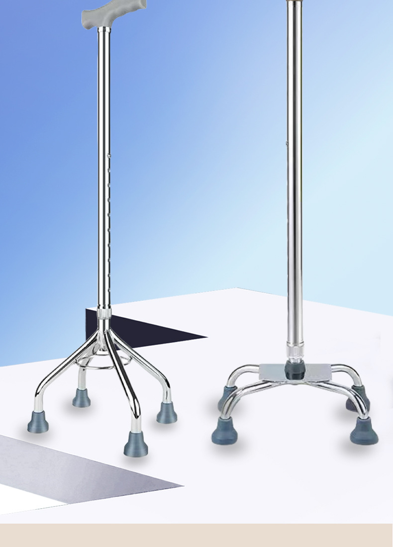 노인용 지팡이, 미끄럼 방지, 경량, 다기능 지팡이, 등산용 접이식 4발 지팡이