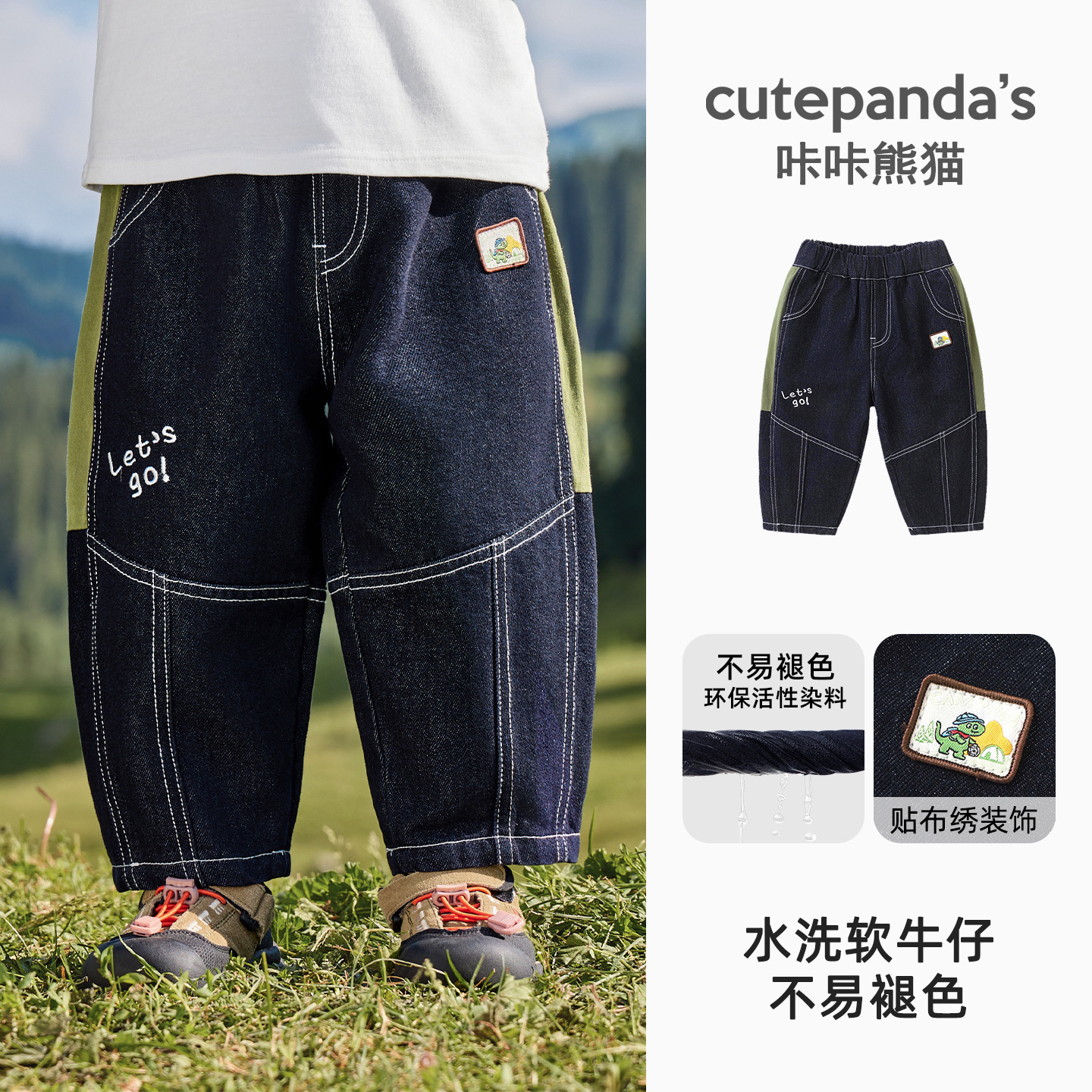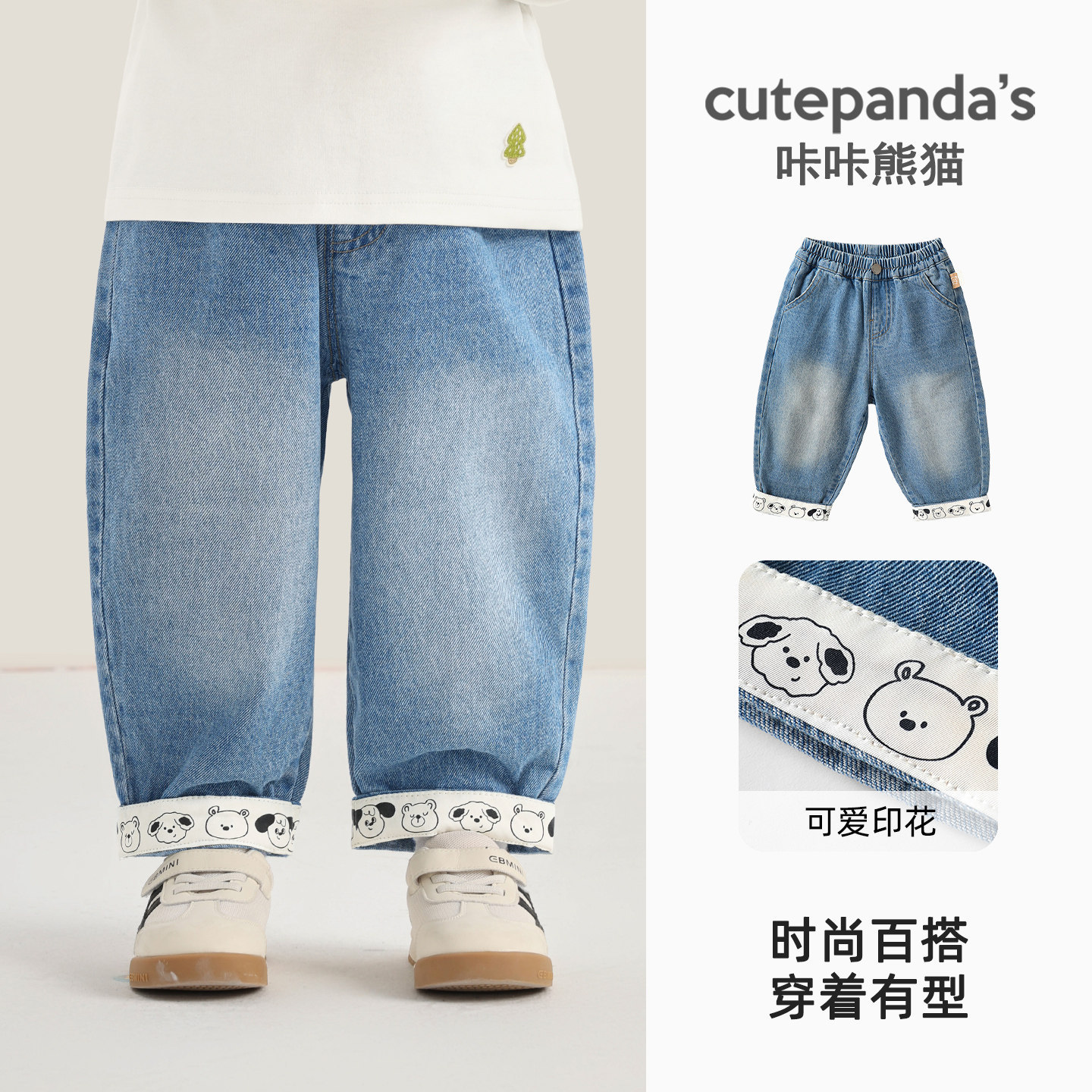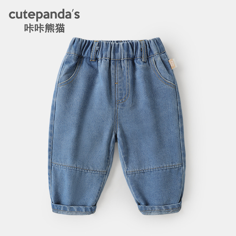 카카 팬더 남아용 청바지 여아용 바지 봄옷 봄가을 아동 캐주얼 바지 봄 아기옷 유행
