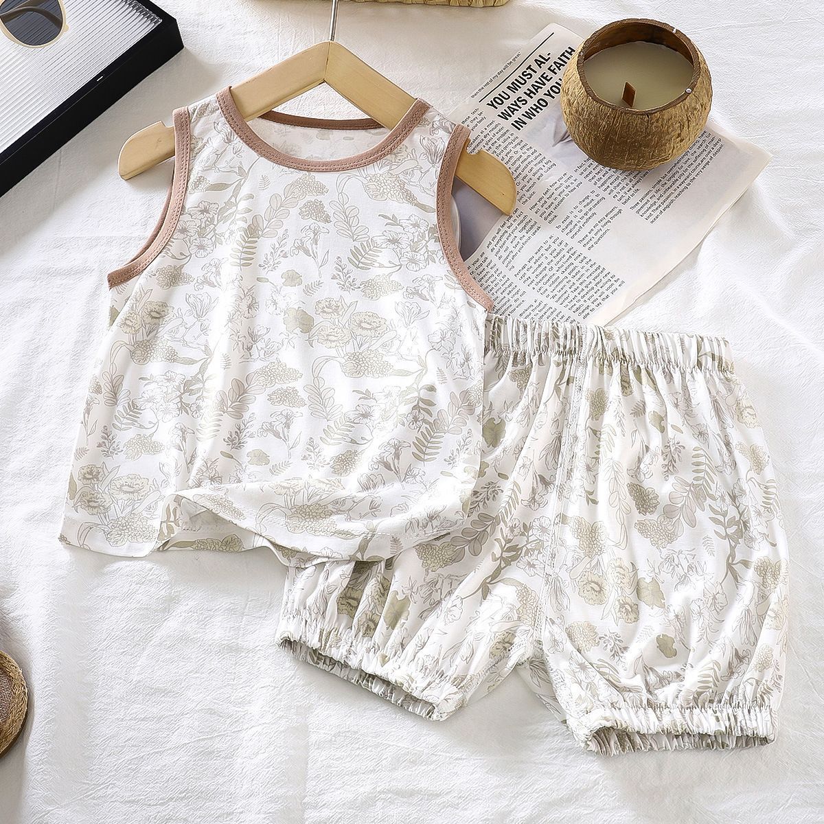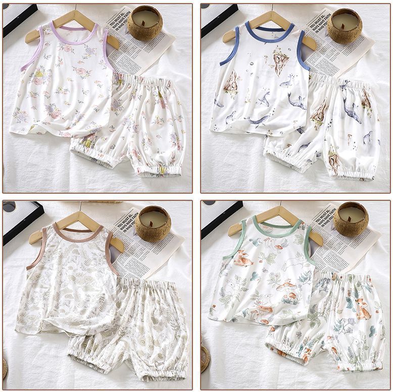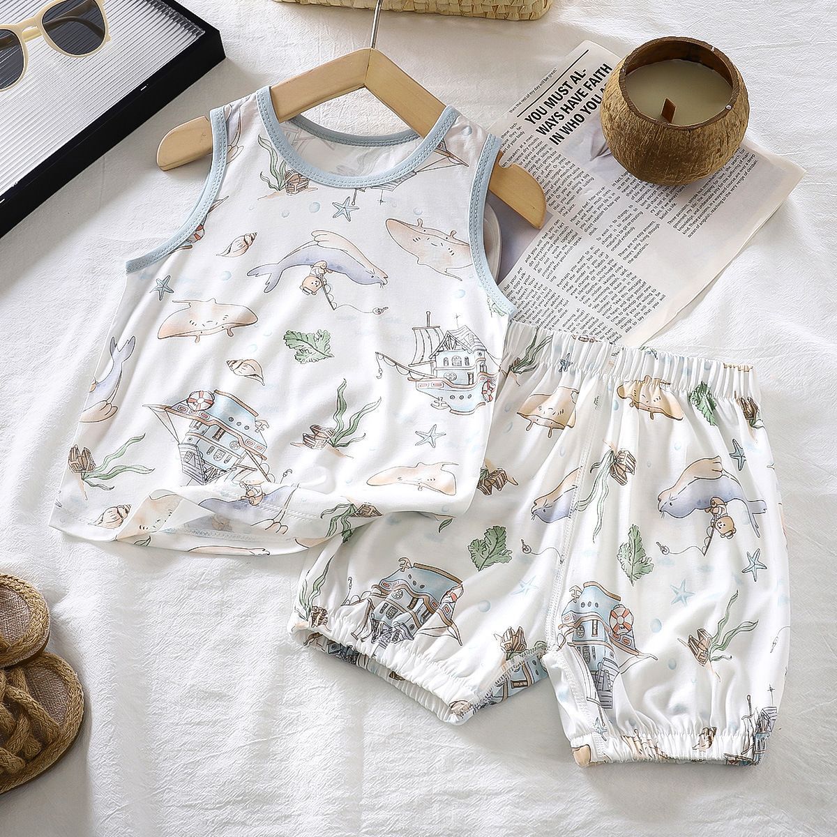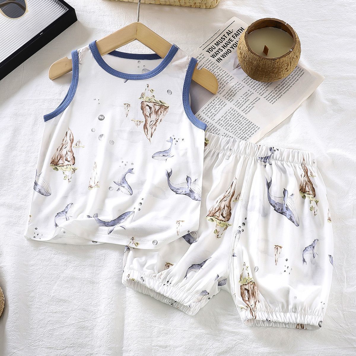 2025 새로운 조끼 울트라 맨 잠옷 세트 아기 여름 얇은 소년 만화 반바지 가정 의류스토어 가기