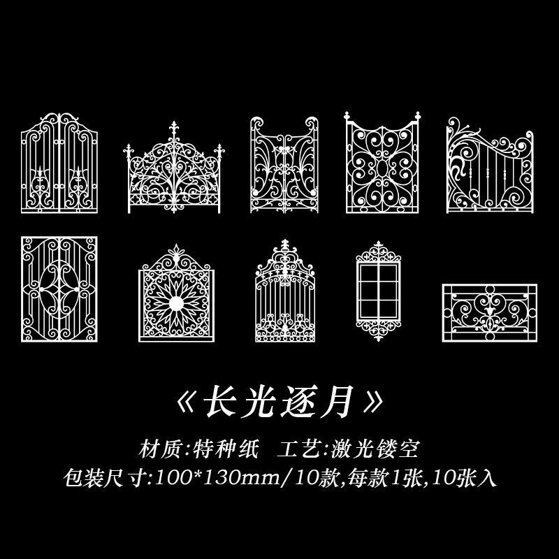 인필미 레트로 매너 시리즈 소재 패키지 레트로 중공 도어 및 창 핸드북 소재 10개 4가지 스타일