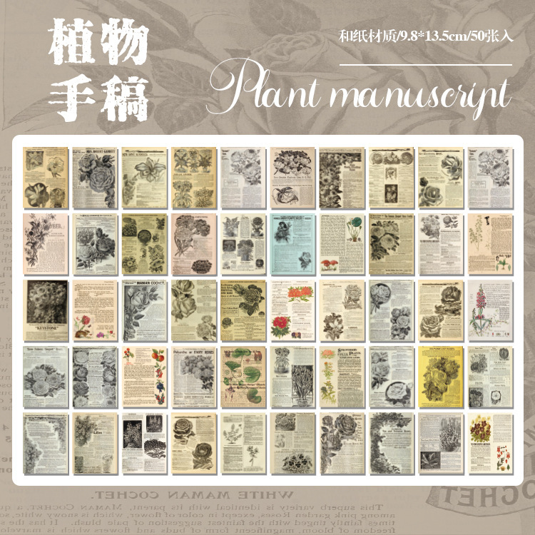 Yuxian Chronicle Times 시리즈 스티커 복고풍 스타일 식물 잡지 오래된 신문 텍스트 핸드북 장식 기본 종이